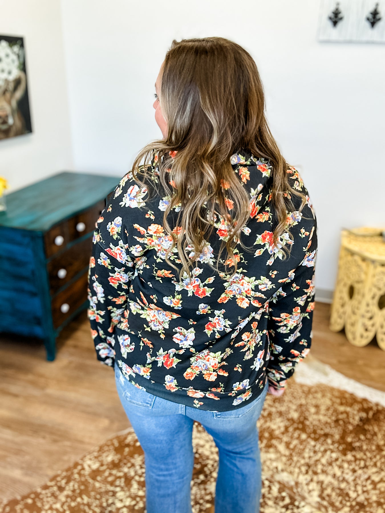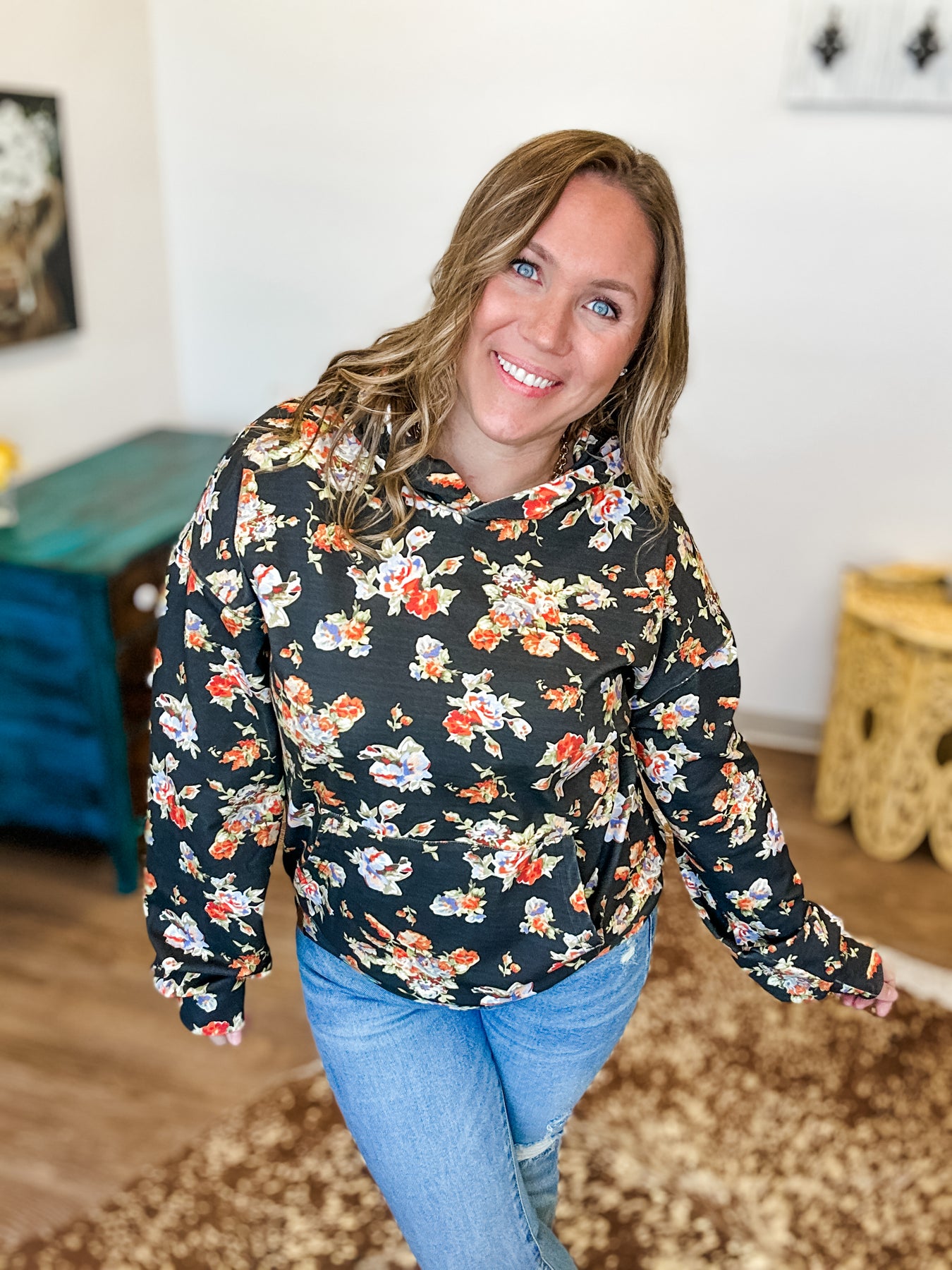 Stuck On You - Ampersand Avenue Black Floral Print University Hoodie