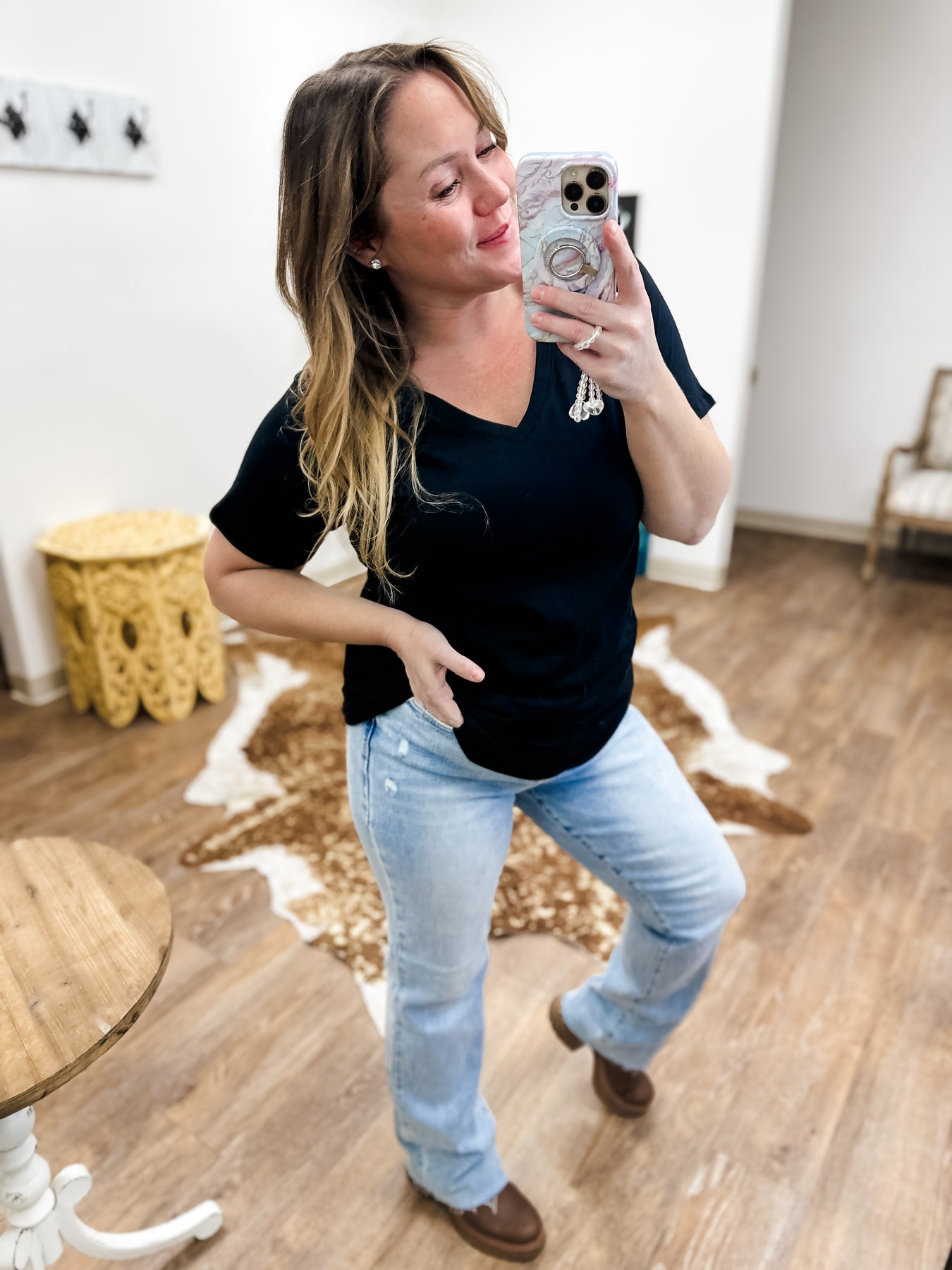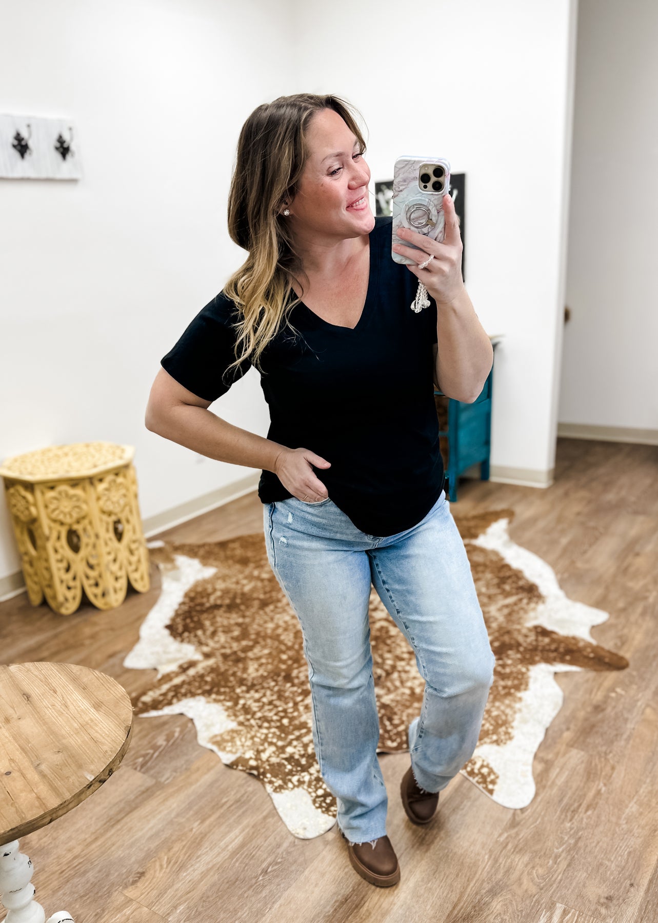 Girlfriend Tee Vneck (100% Cotton) - Black