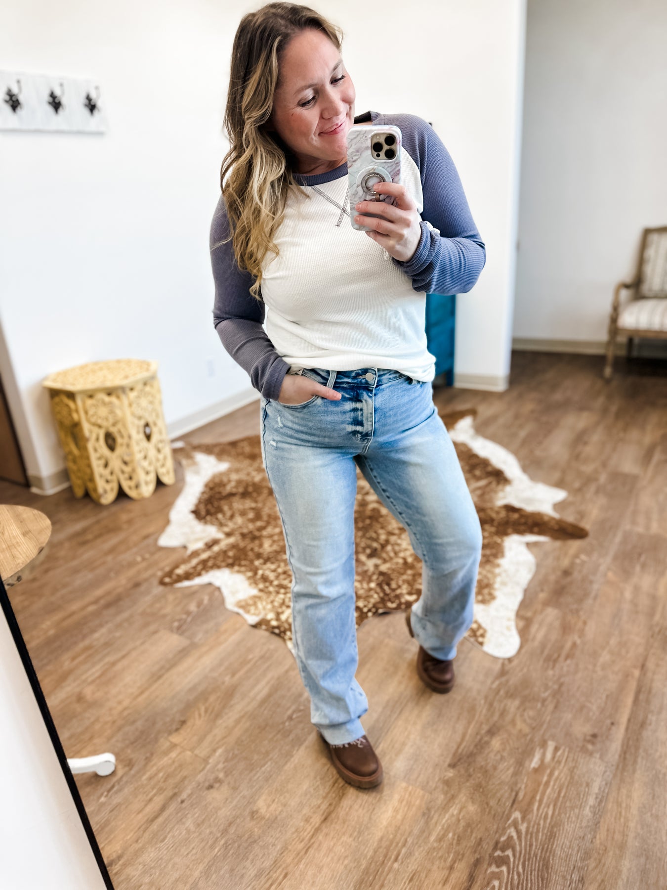 These are a really solid dad jean!  They'll be your new favorite pair.  They have a comfortable mid-rise that sits naturally at the waist and a straight, relaxed leg that doesn’t taper or cling - but is still really flattering. The light wash is clean and classic, and super easy to wear with both casual tops and more polished pieces.