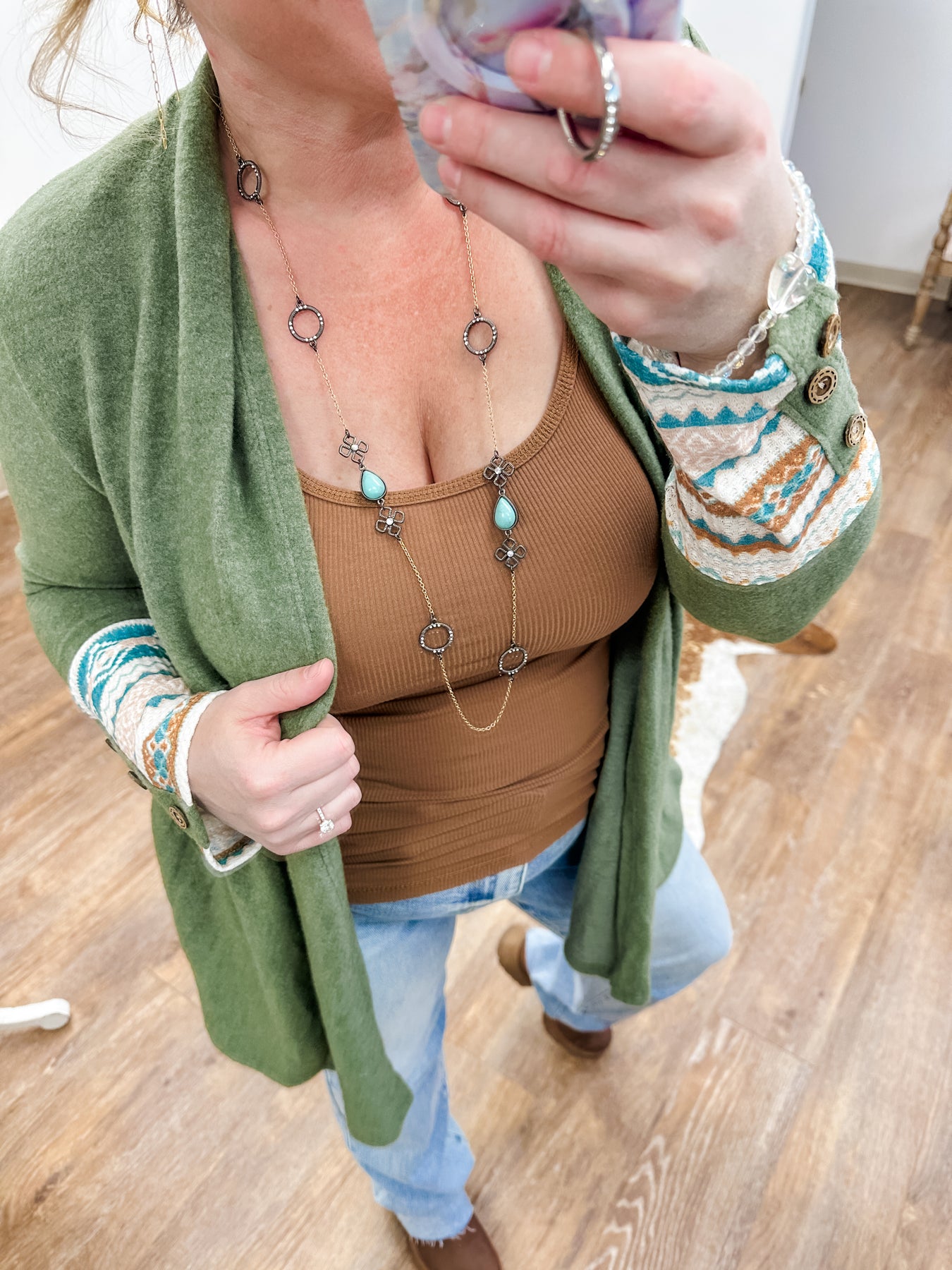 It’s the kind of necklace that pulls an outfit together without trying — perfect with a white blouse, your favorite graphic tee, or a breezy dress for that “collected from my travels” feel. A little boho, a little polished, and totally timeless.