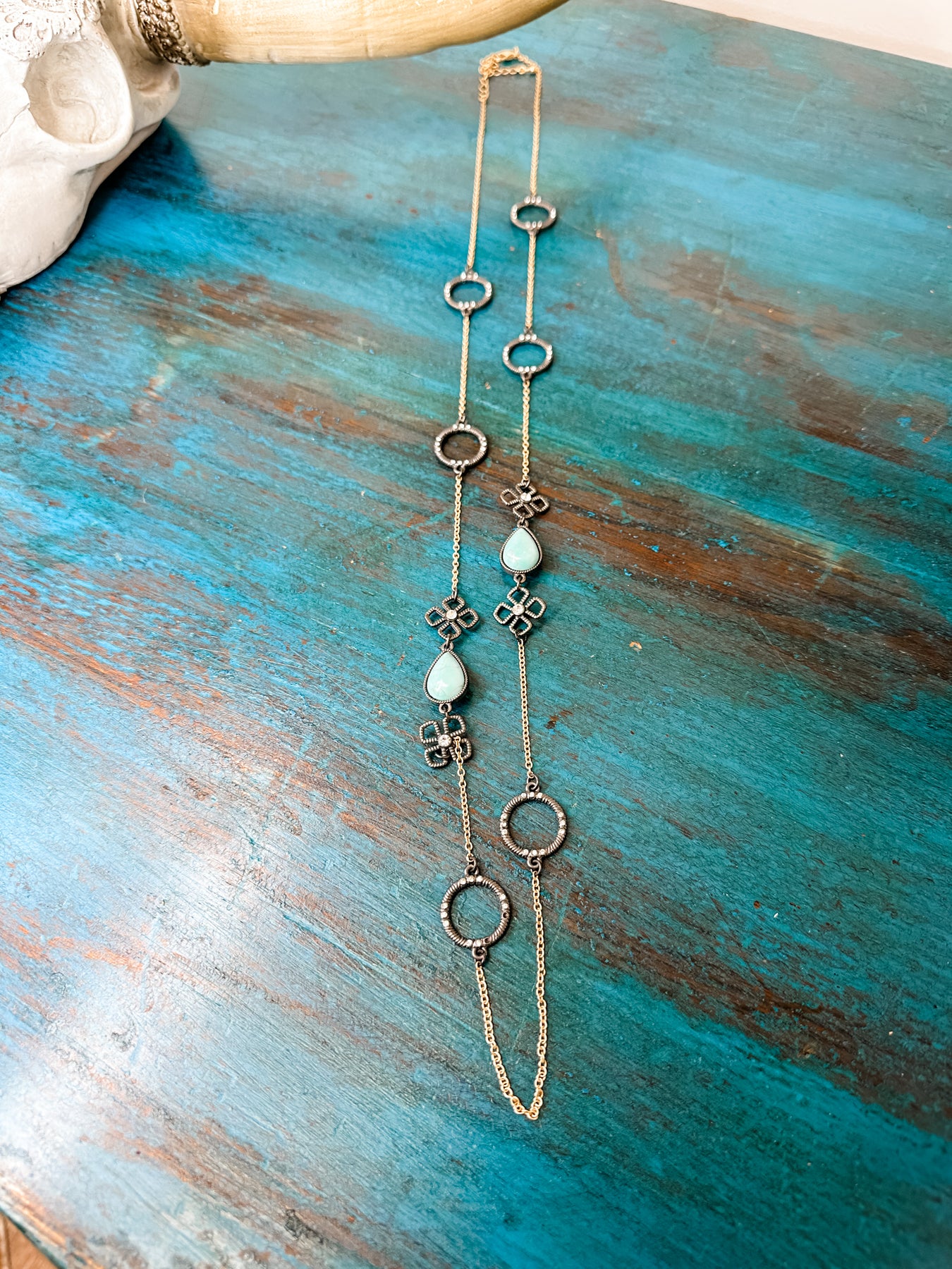 Relax - Mixed Metal Turquoise and Rhinestone Long Length Necklace