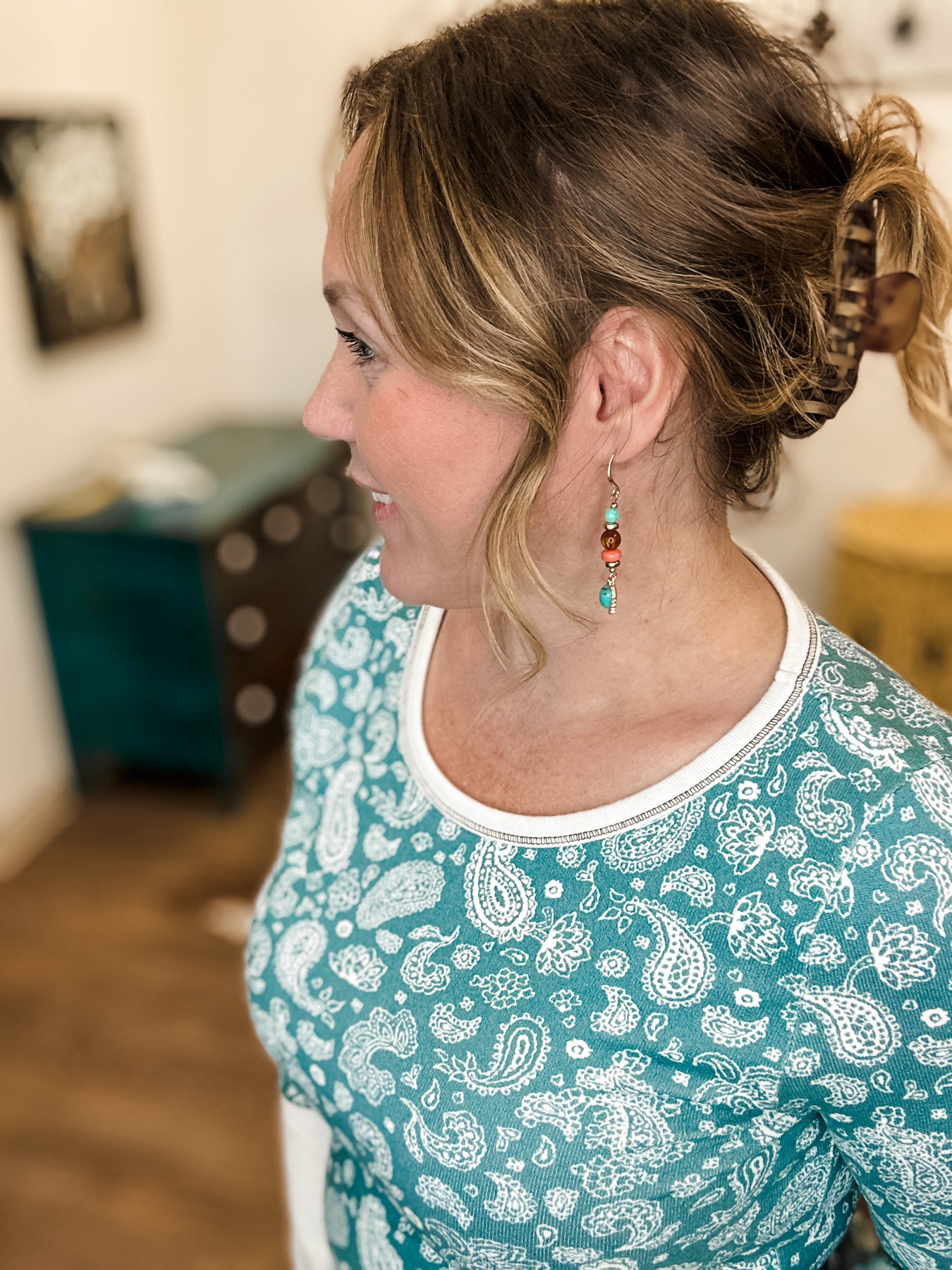 Regular price $26.80These just feel happy. Trail Delight has that earthy-pretty mix that goes with everything without trying too hard. The soft turquoise heart, warm amber tones, and little pops of coral make them feel a little western, a little playful, and very easy to wear.