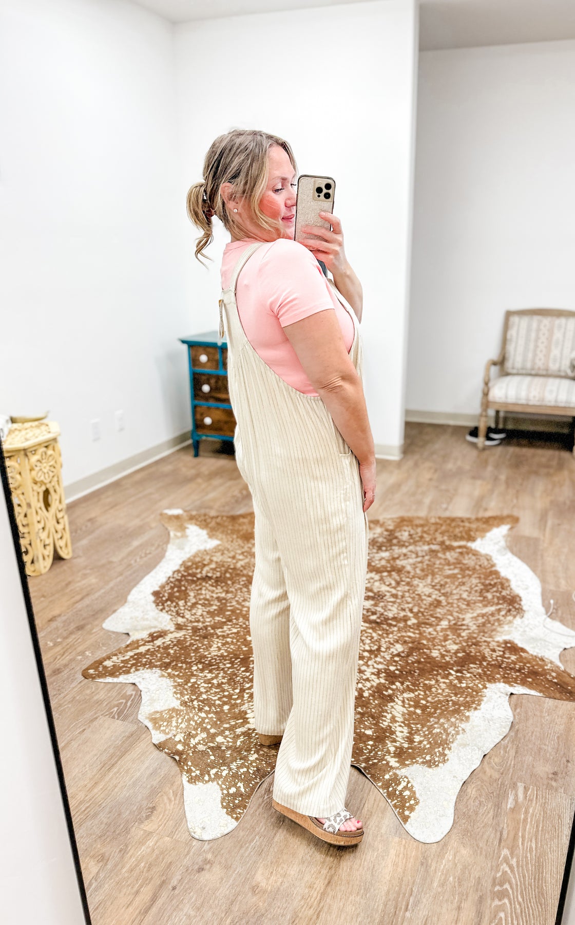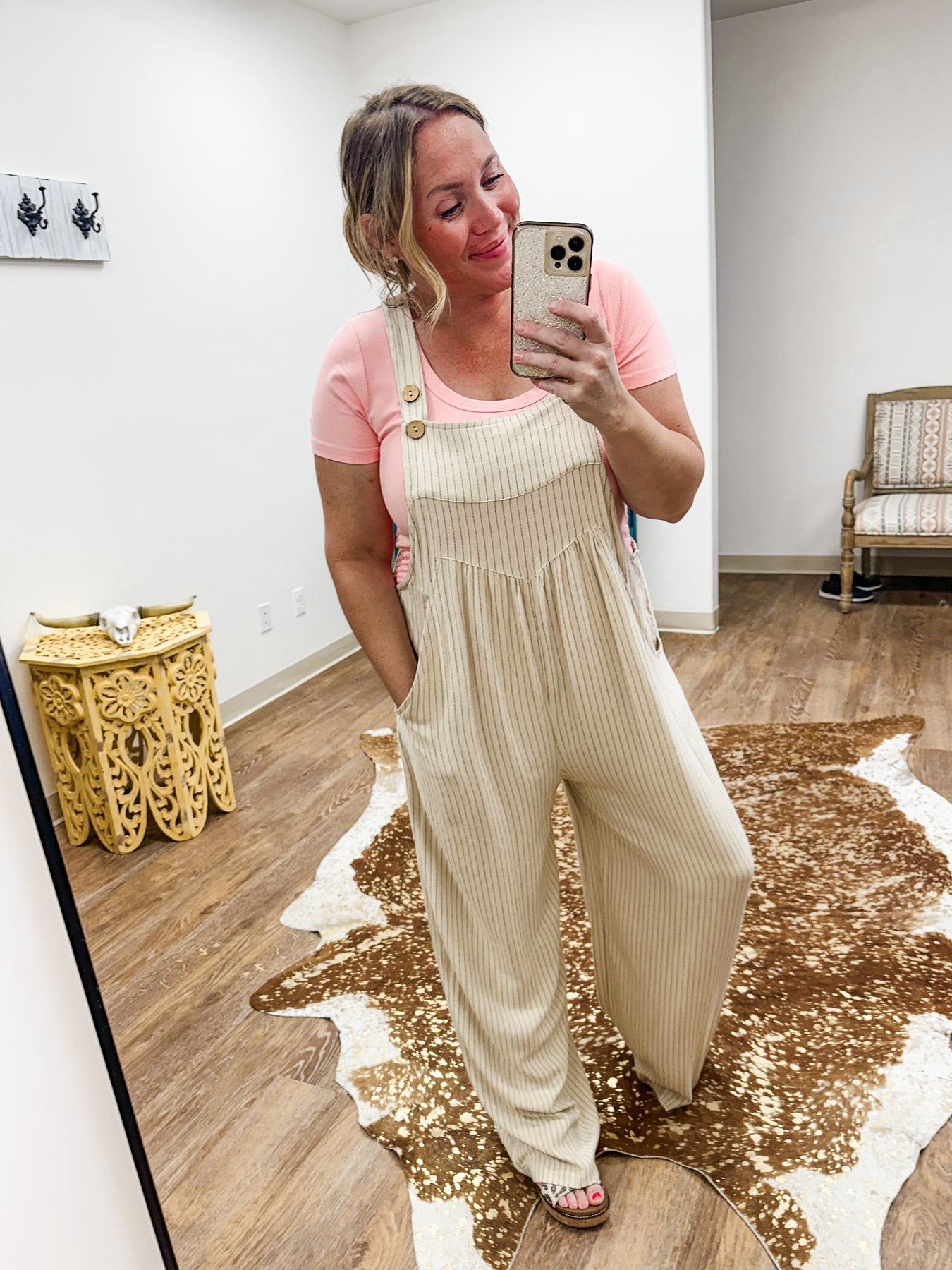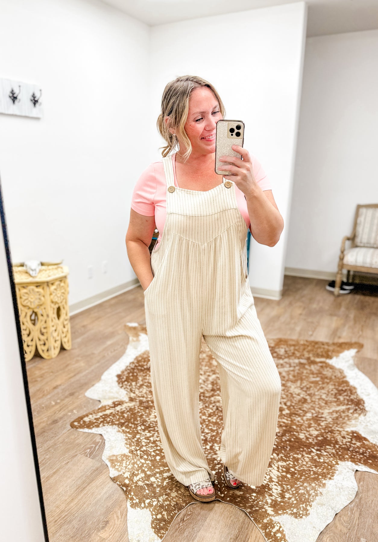 Oh my, guys these overalls are SO COMFORTABLE AND CUTE! I am in love. This pair will be your go-to for an easy, cute look with zero effort. Made from a light linen blend, she's got slim vertical stripes - of course super flattering - roomy wide legs, and adjustable button straps for a perfect fit.  With fun, functional side pockets and a relaxed shape, she keeps you comfortably all day.