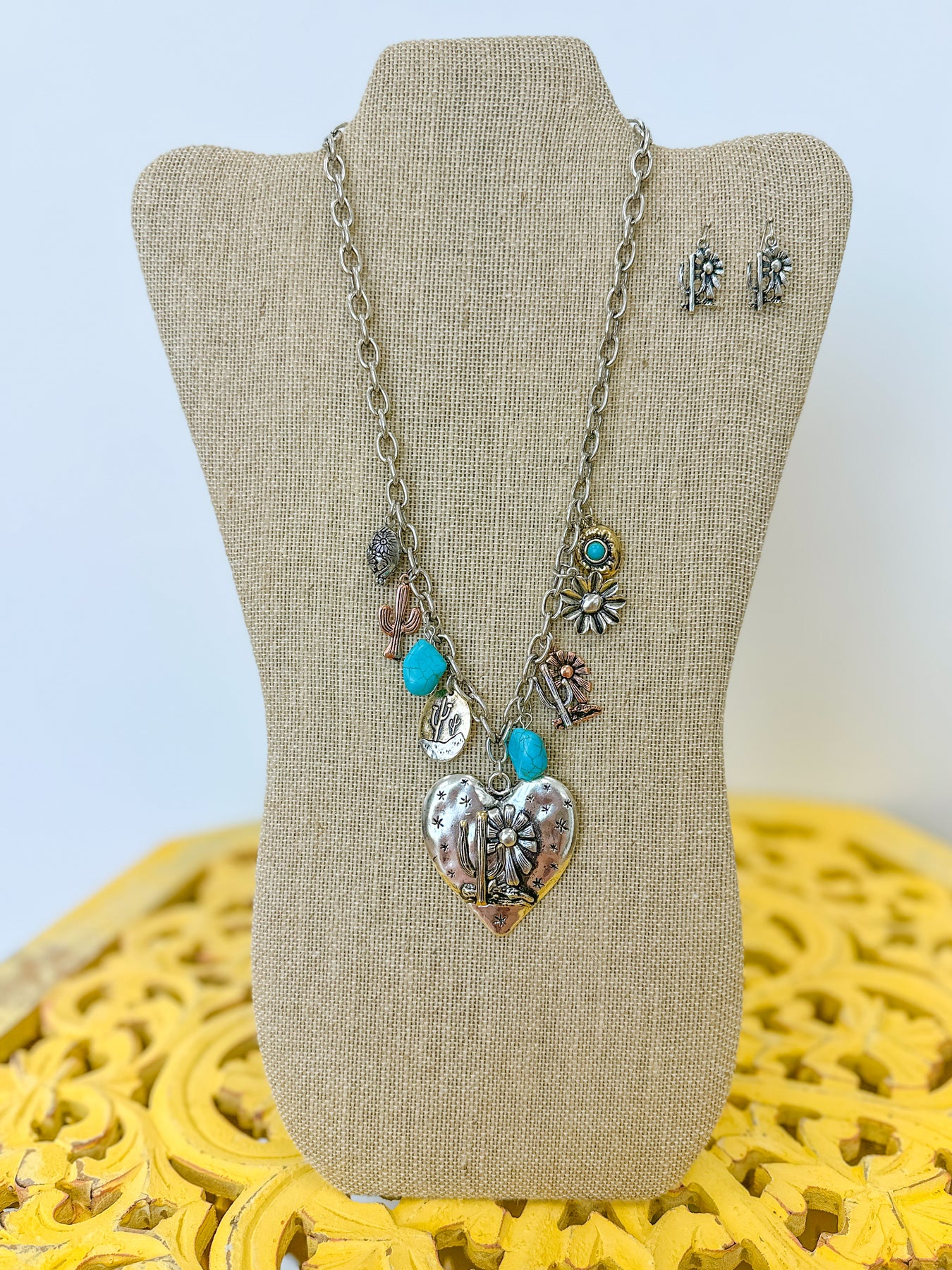 Saguaro Soul - Mixed Metal Charm Necklace and Earring Set