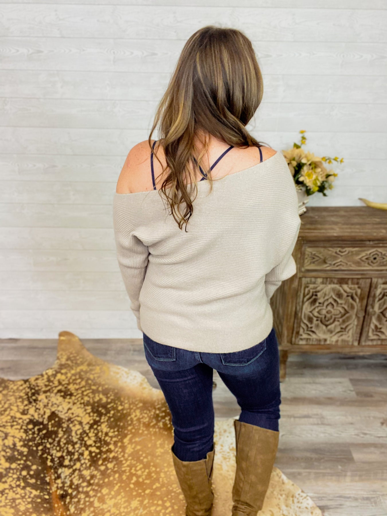 Mallory - Ribbed Knit Asymmetrical Sweater in Taupe