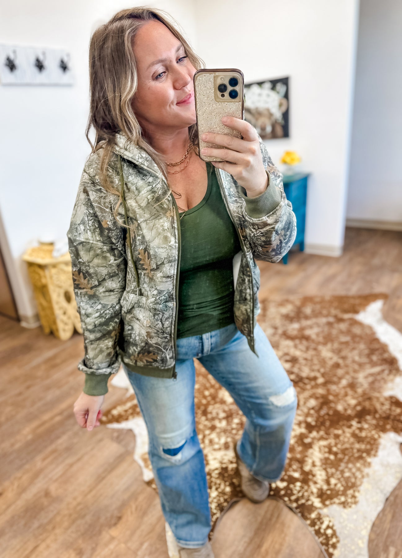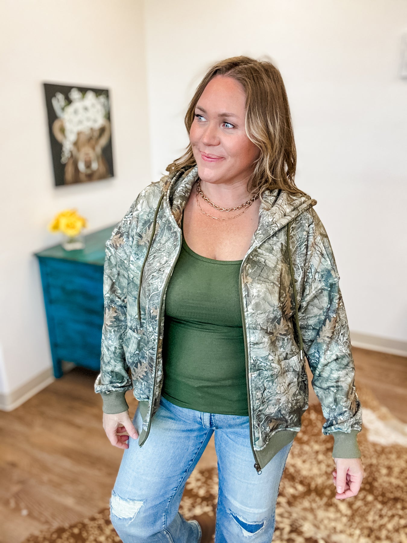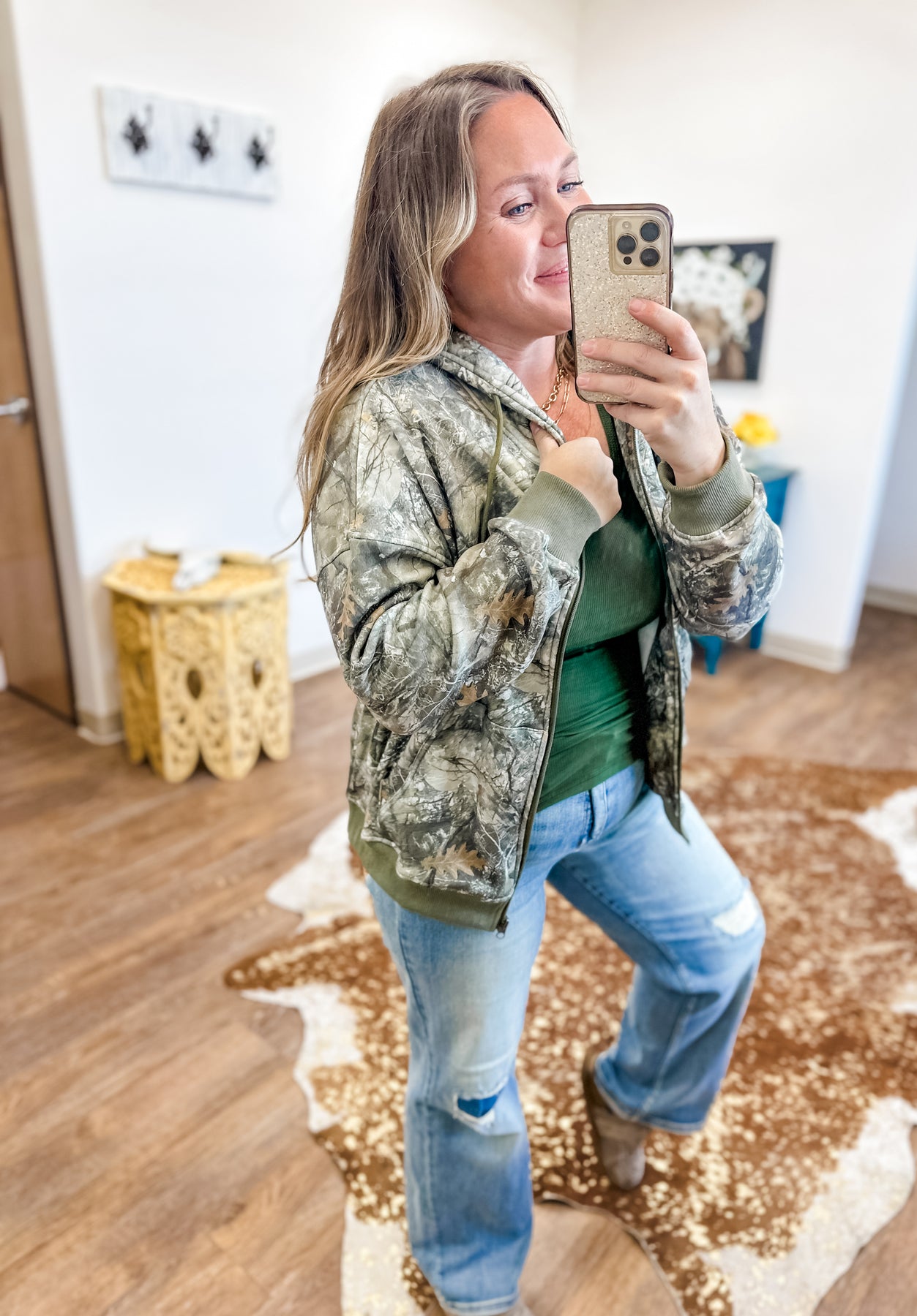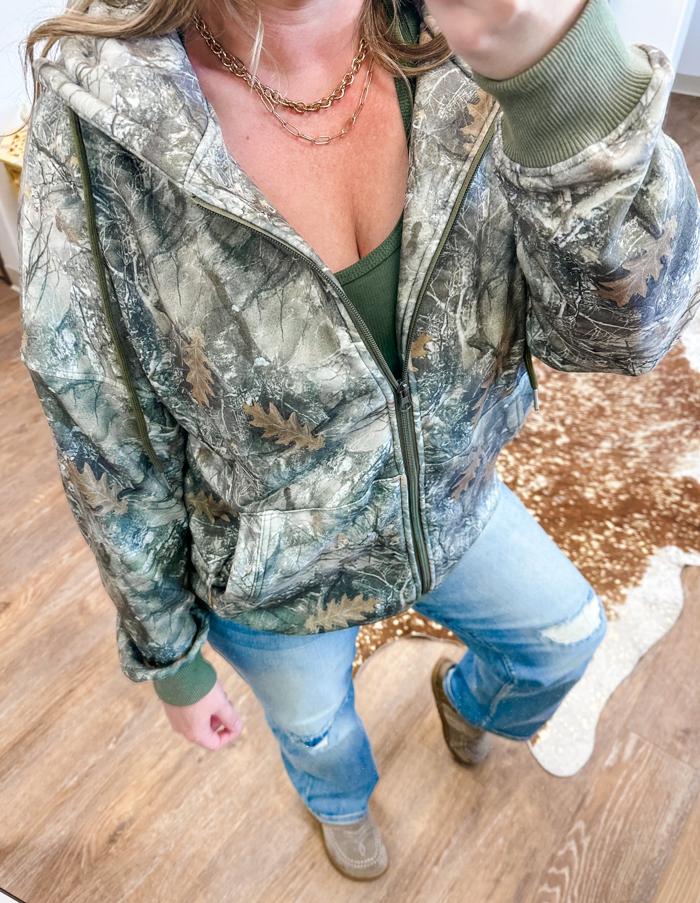 Harper - Moss Weighted Camo Zip-Up Hoodie