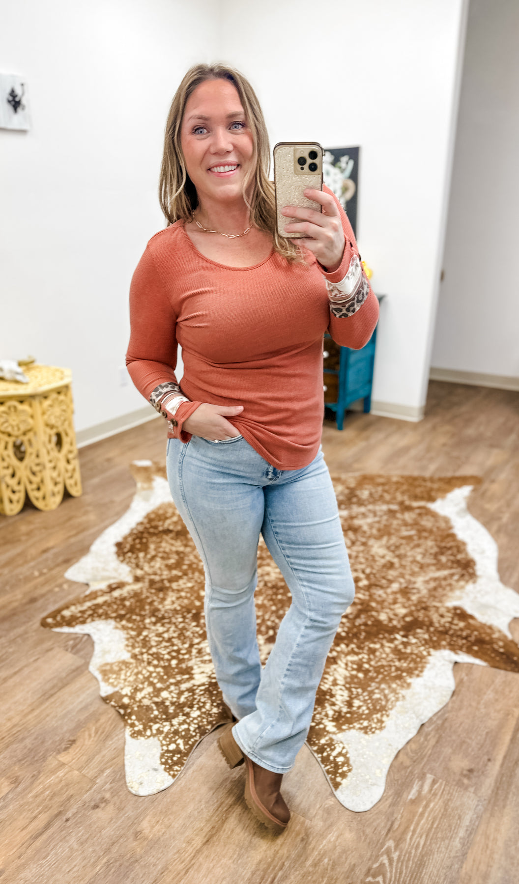 Marlowe - Rust Scoop Neck Thermal with Cuff Detail