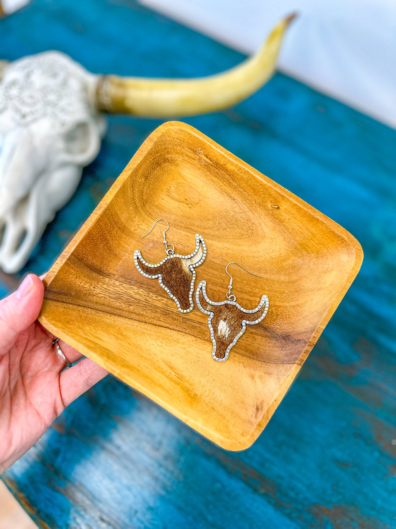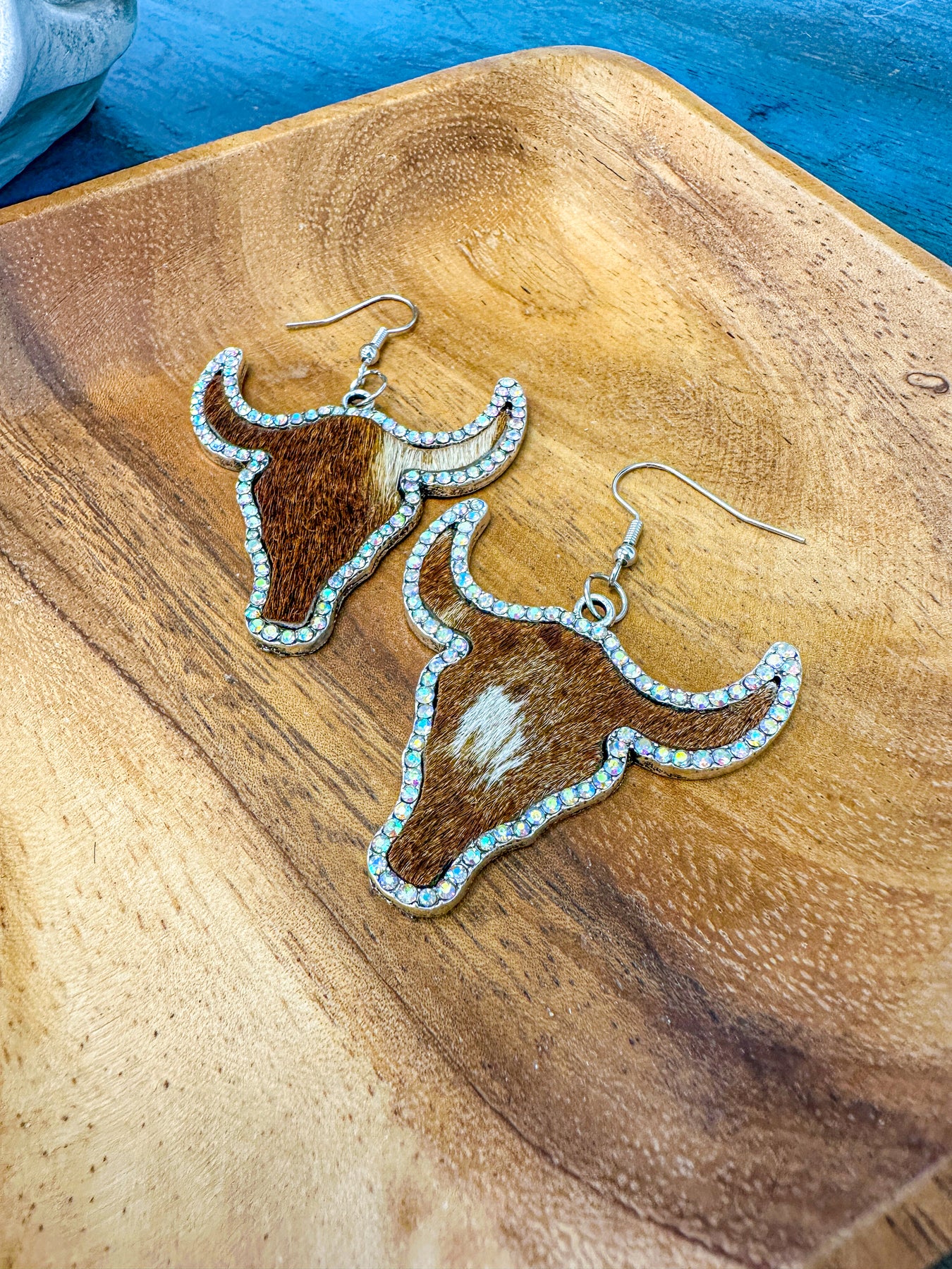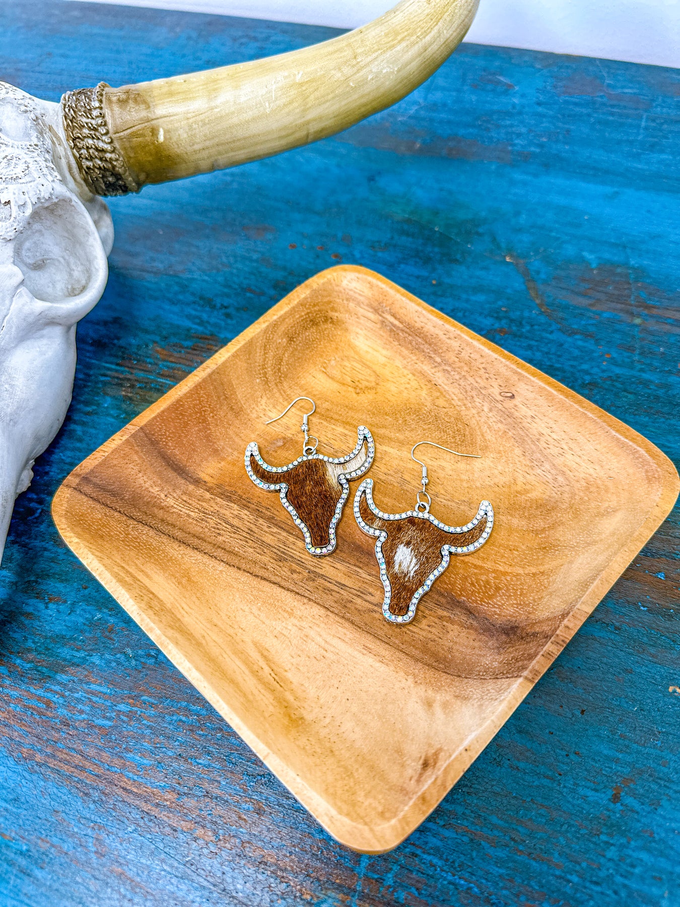 Grit - Hair on Leather & Rhinestone Steer Head Earrings