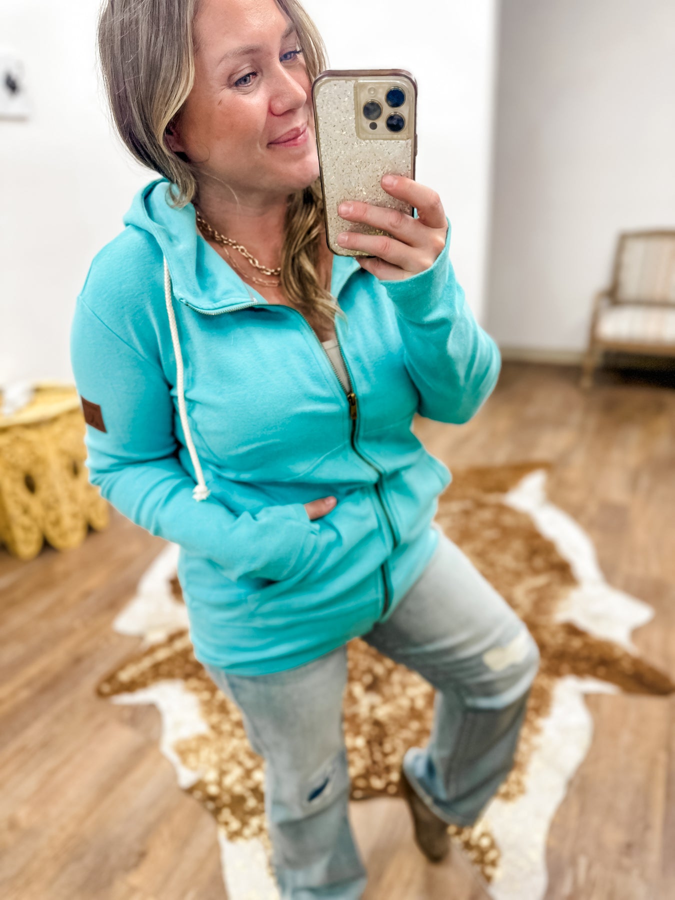 Ampersand Avenue Full Zips are some of our best selling items.  They are the best quality, the most comfortable, flattering fit - and just such a versatile, useful item to have.  Great for gifting too!  This Ocean Blue is PERFECT - the best teal blue - and a color that just makes me happy!