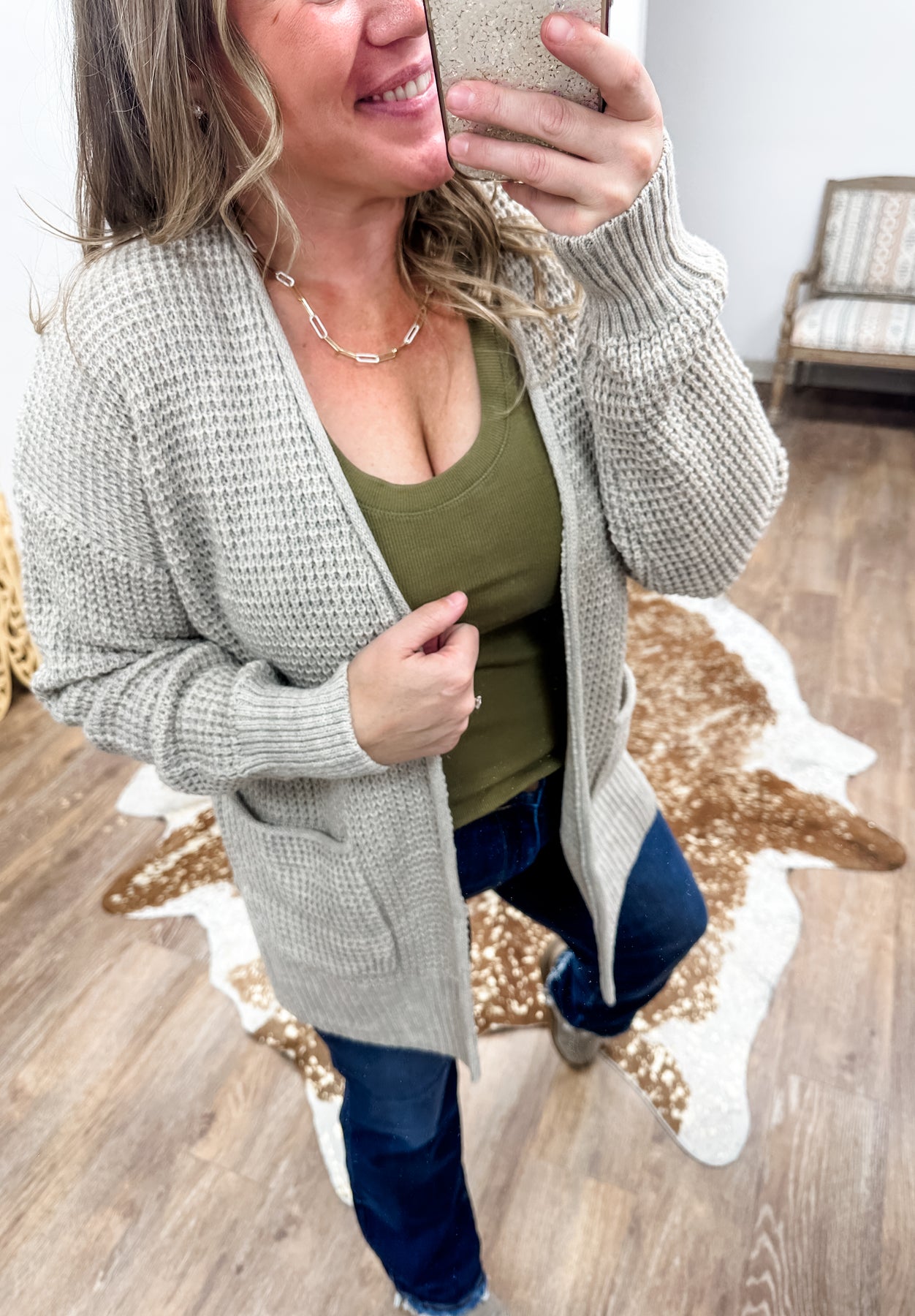 Meet your new layering MVP. The Chloe Tank is that easy, throw-on-and-go piece you’ll wear a hundred different ways. She’s ribbed for a comfy, flattering fit, has the perfect scoop neckline (not too low, not too high), and comes in that earthy olive green that somehow works with everything.