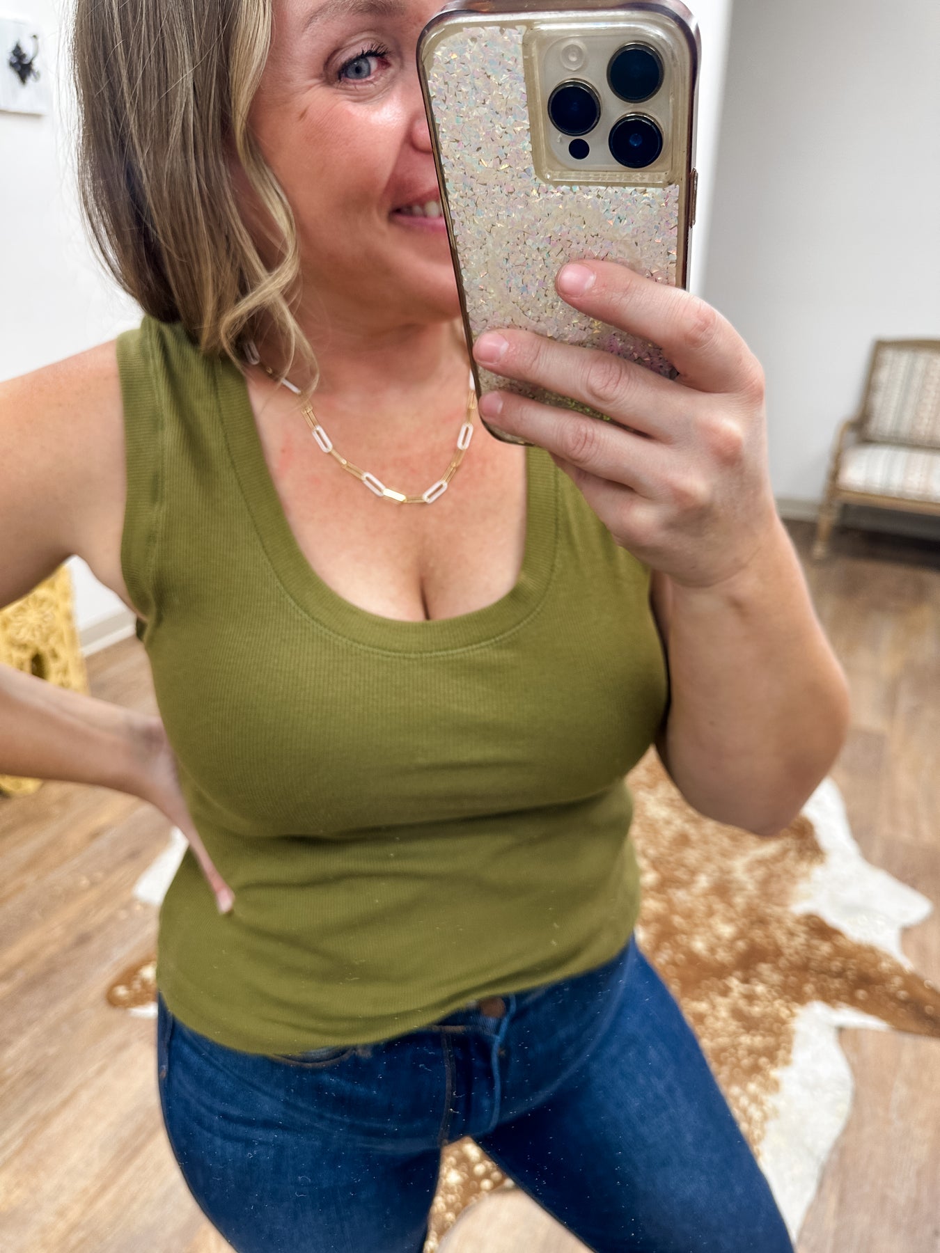 Chloe – Olive Scoop Neck Ribbed Tank Top