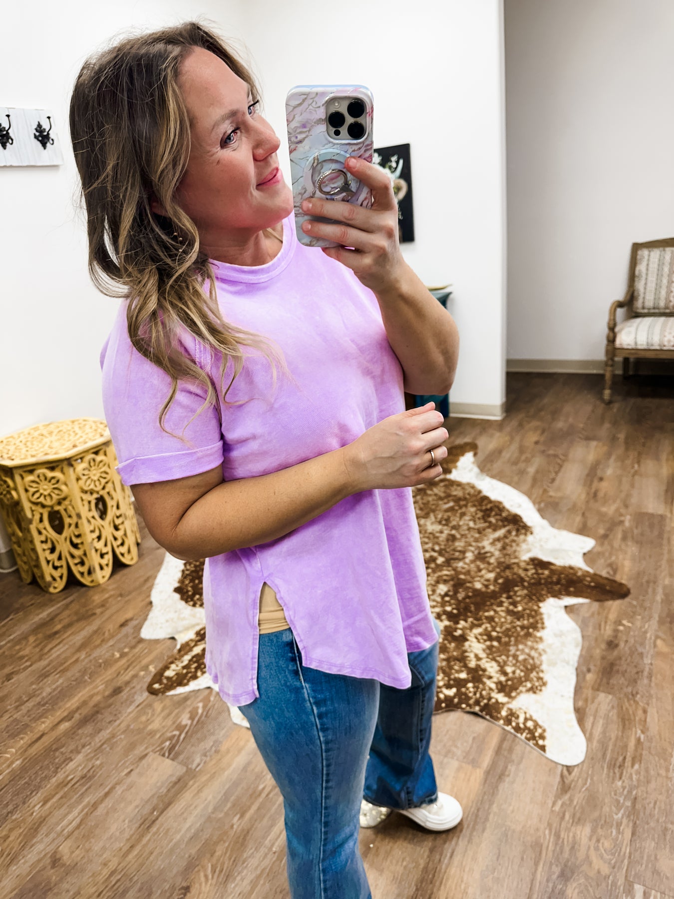 Claret - Orchid French Terry Acid Wash Split Seam Top
