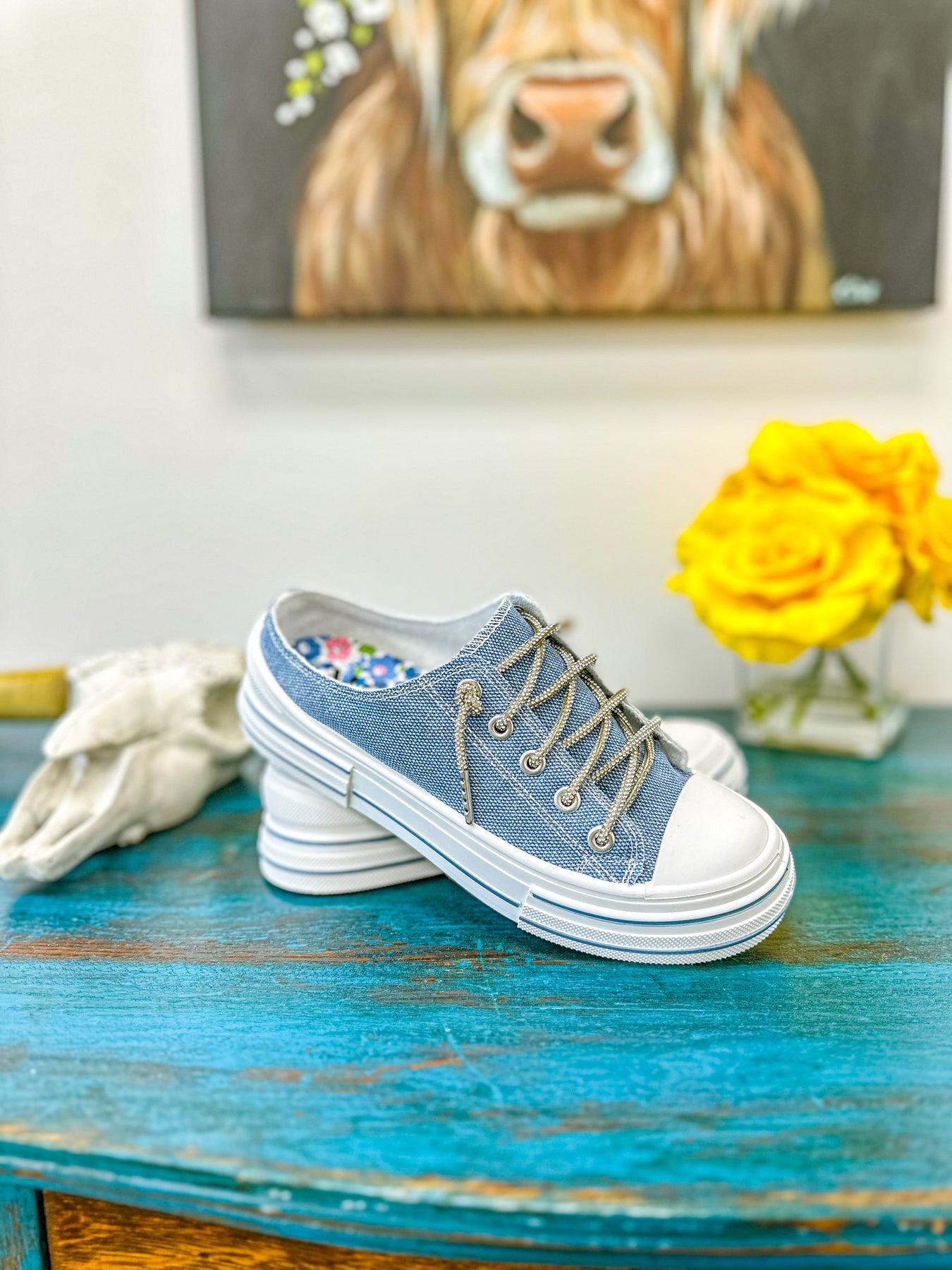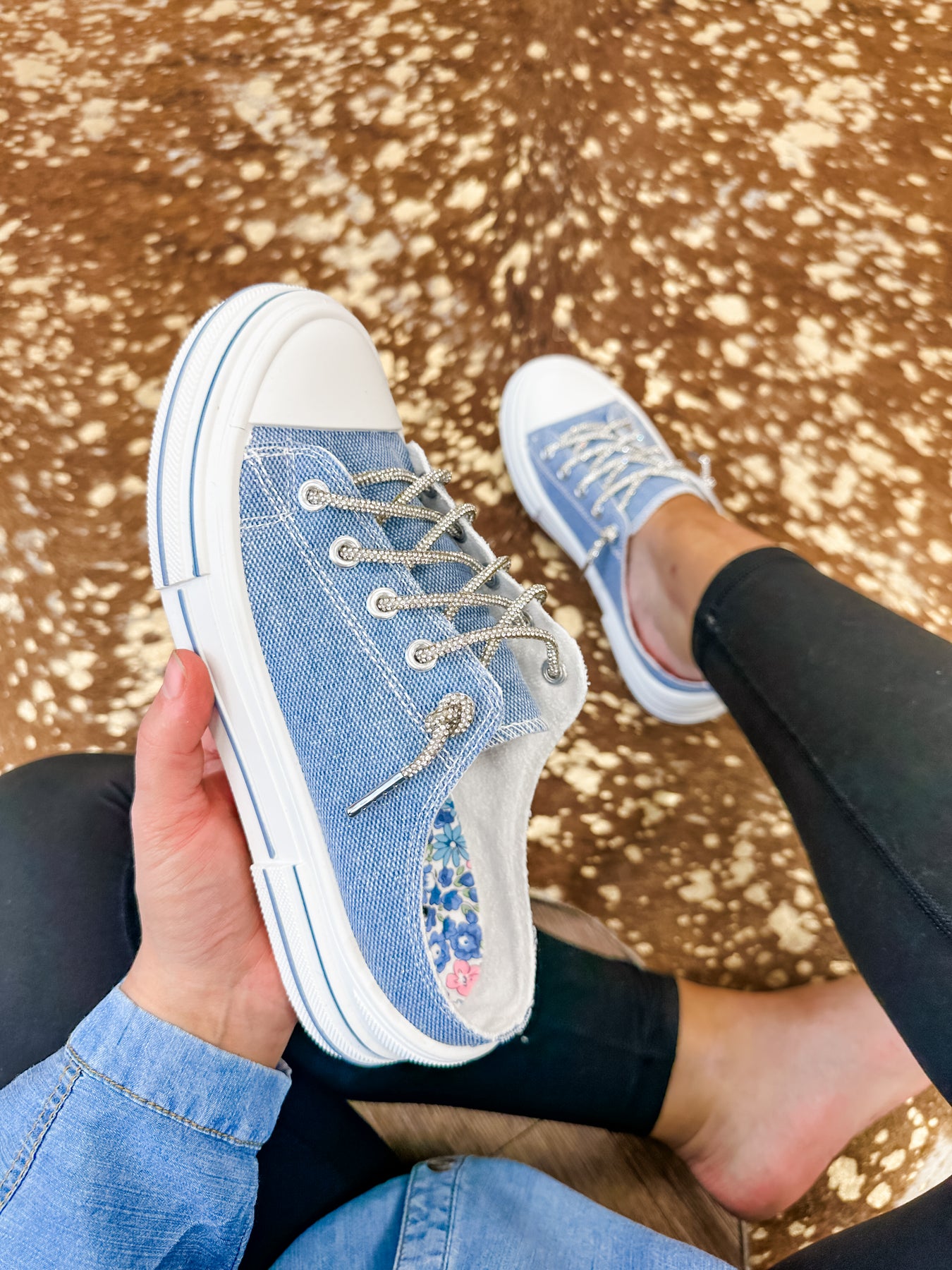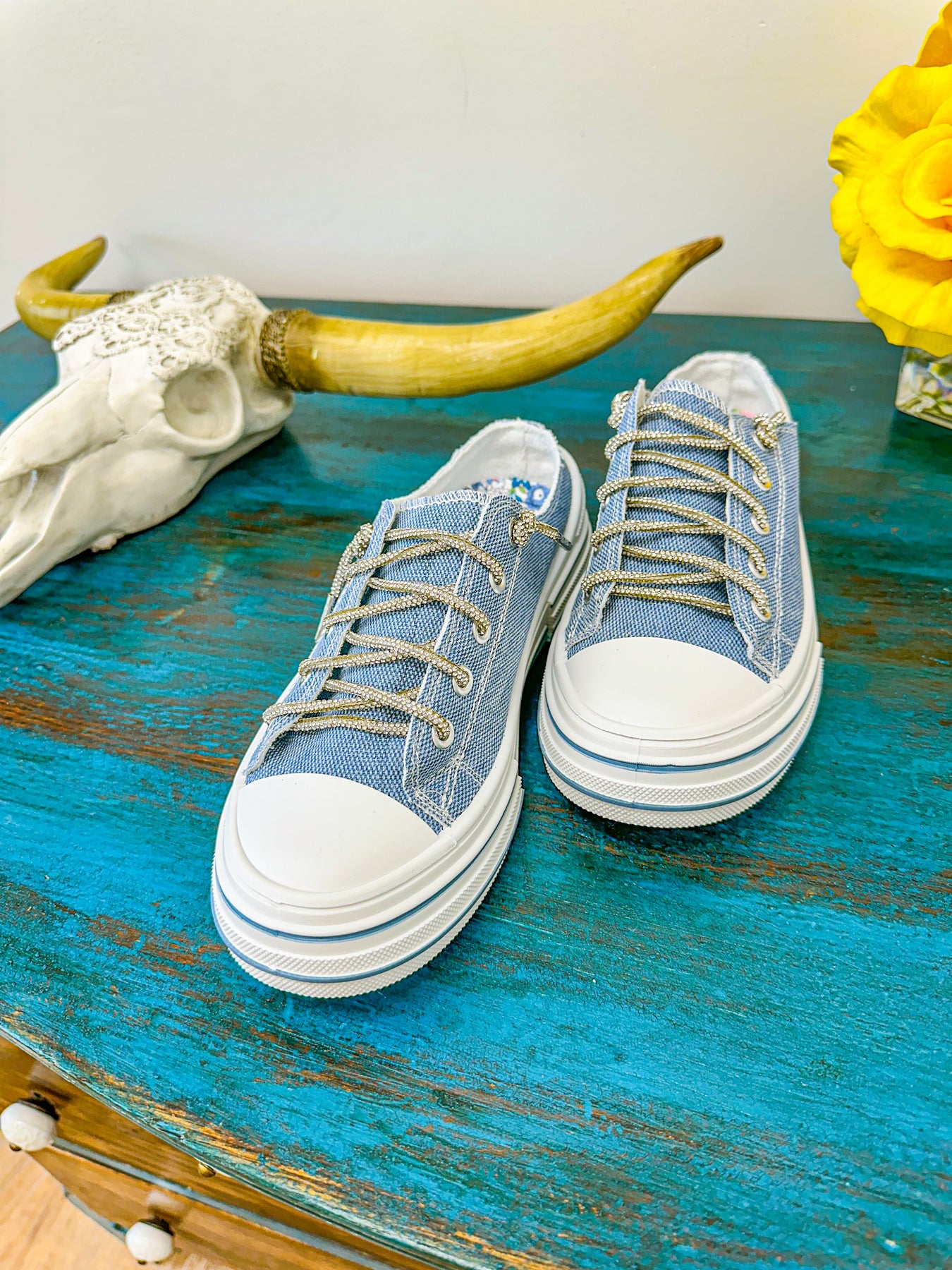 Aman Slip On - Blue Sparkle Canvas Slip on Sneaker with Rhinestone Laces