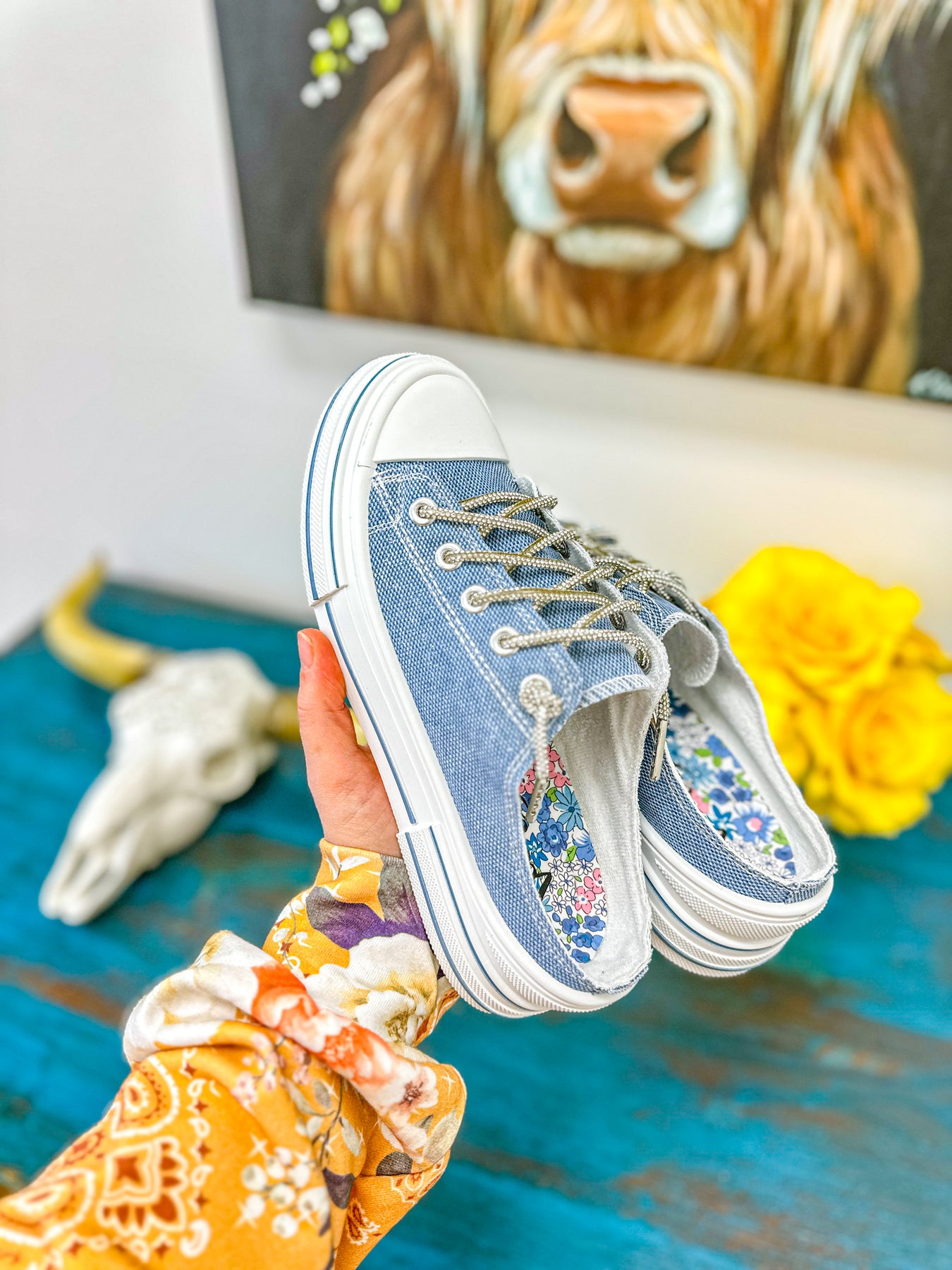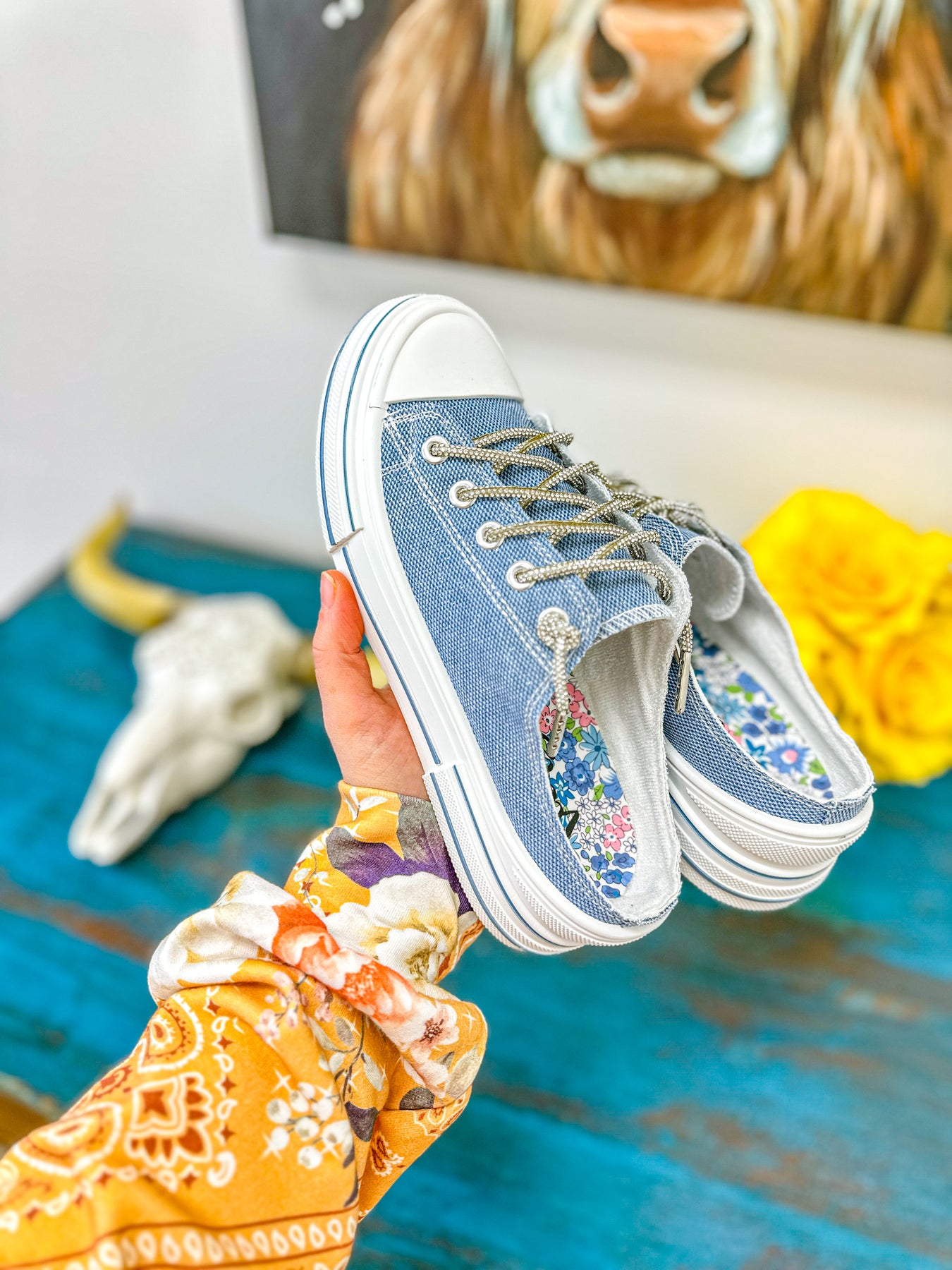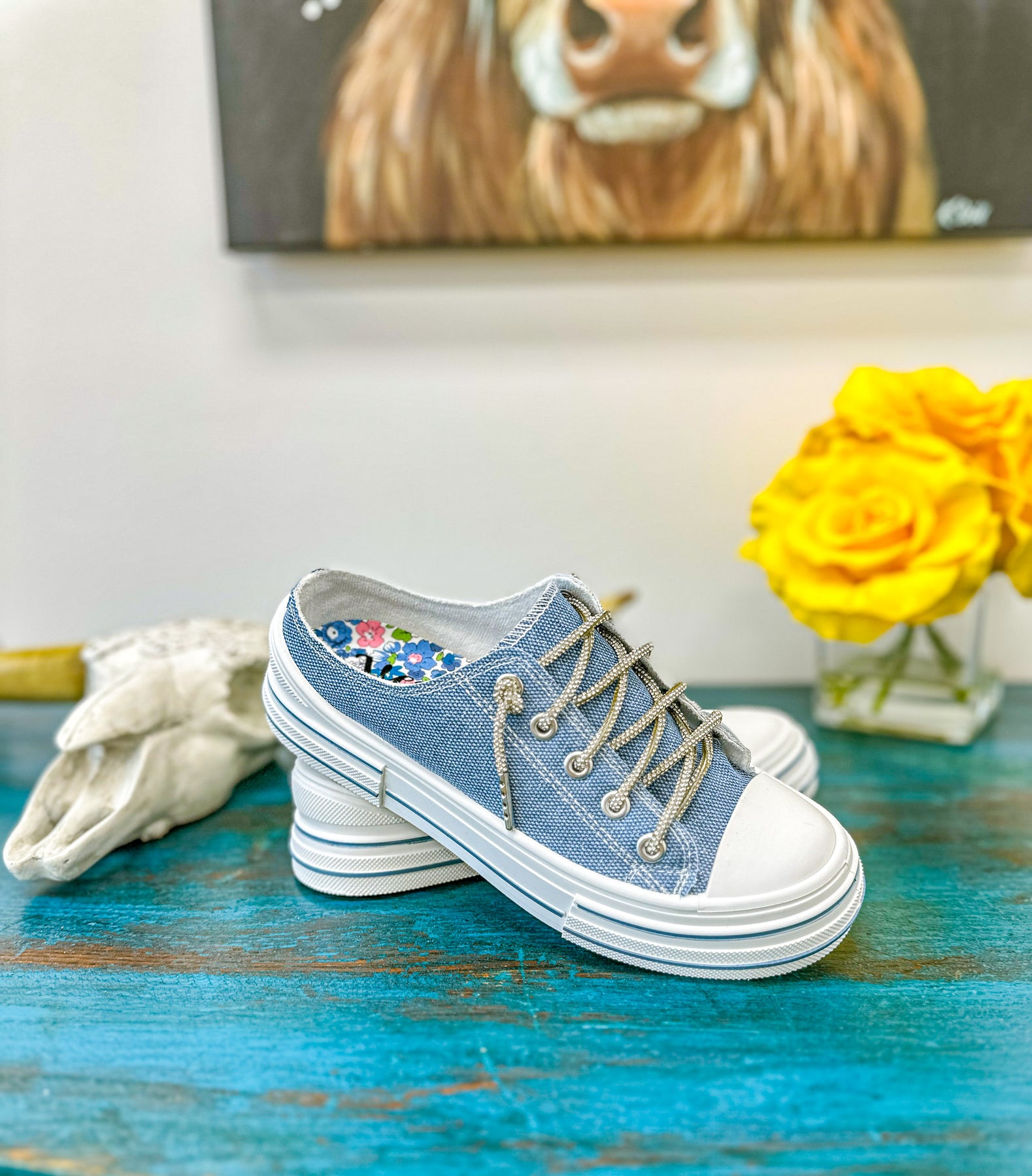Aman Slip On - Blue Sparkle Canvas Slip on Sneaker with Rhinestone Laces