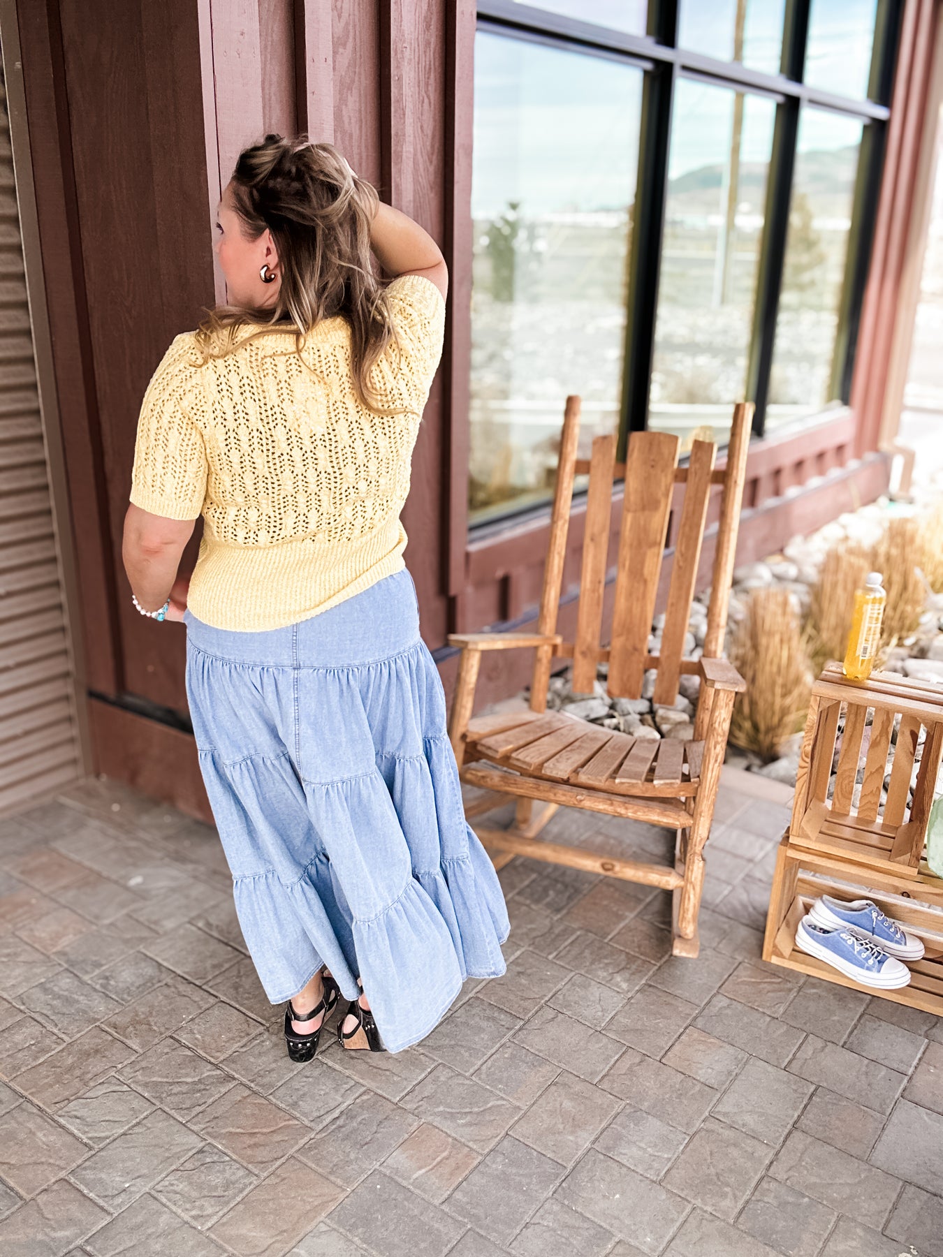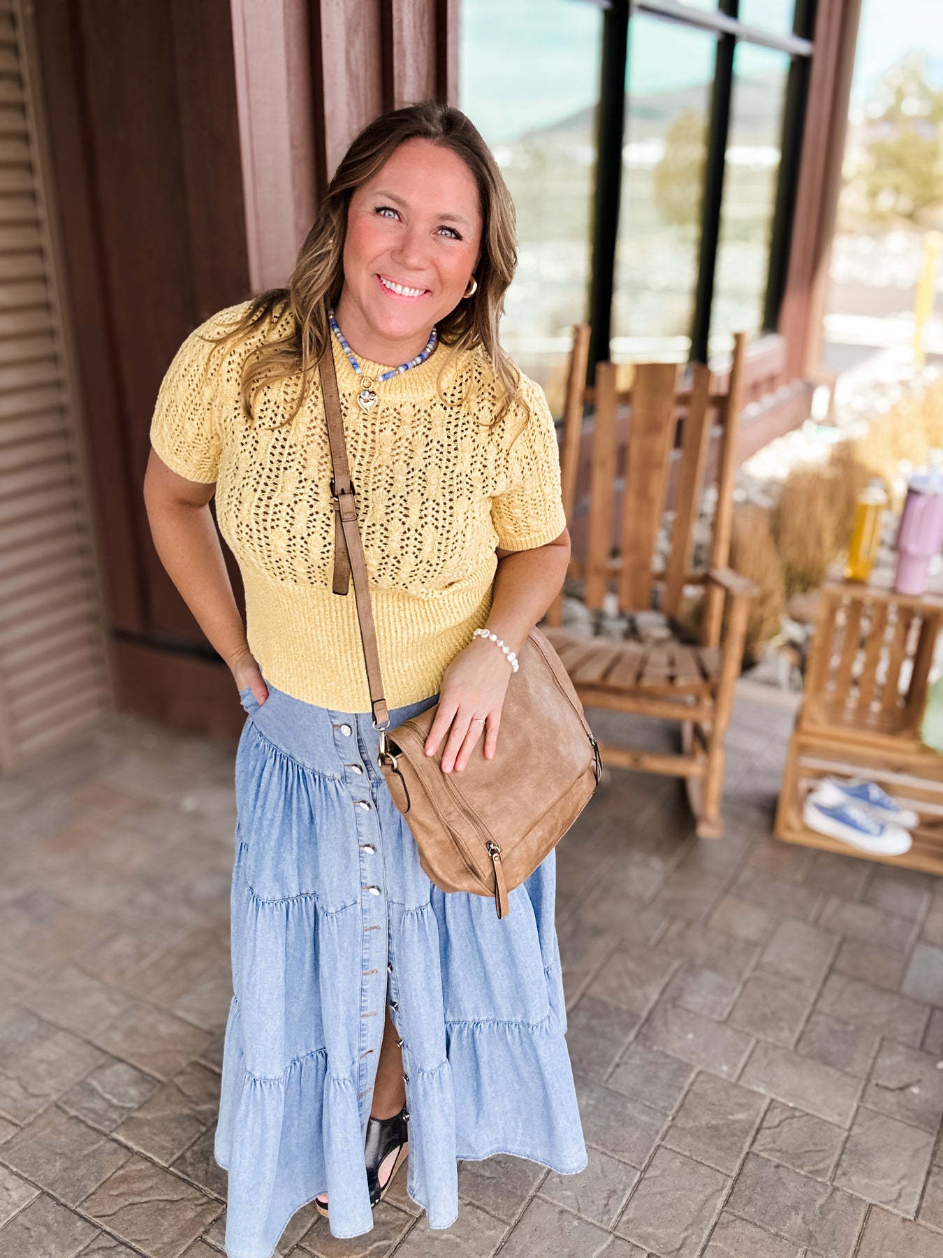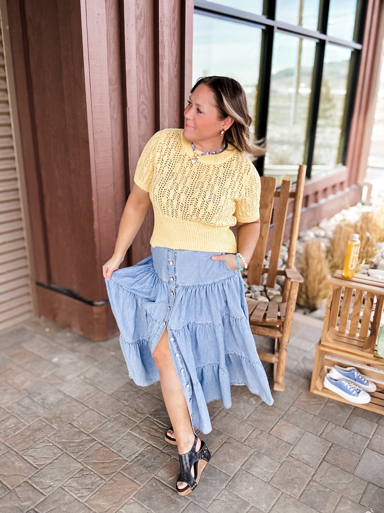 Made from soft cotton denim with a full button front and tiered shape, she’s got that put together and fun energy… even if you absolutely are not.
