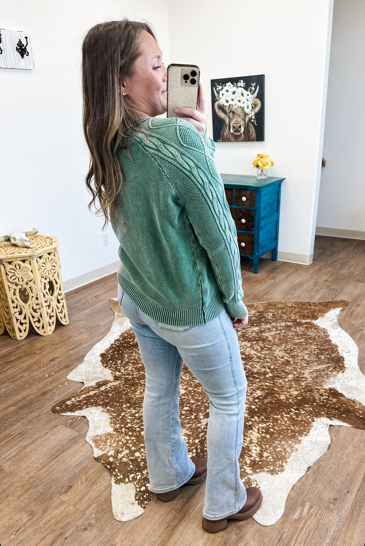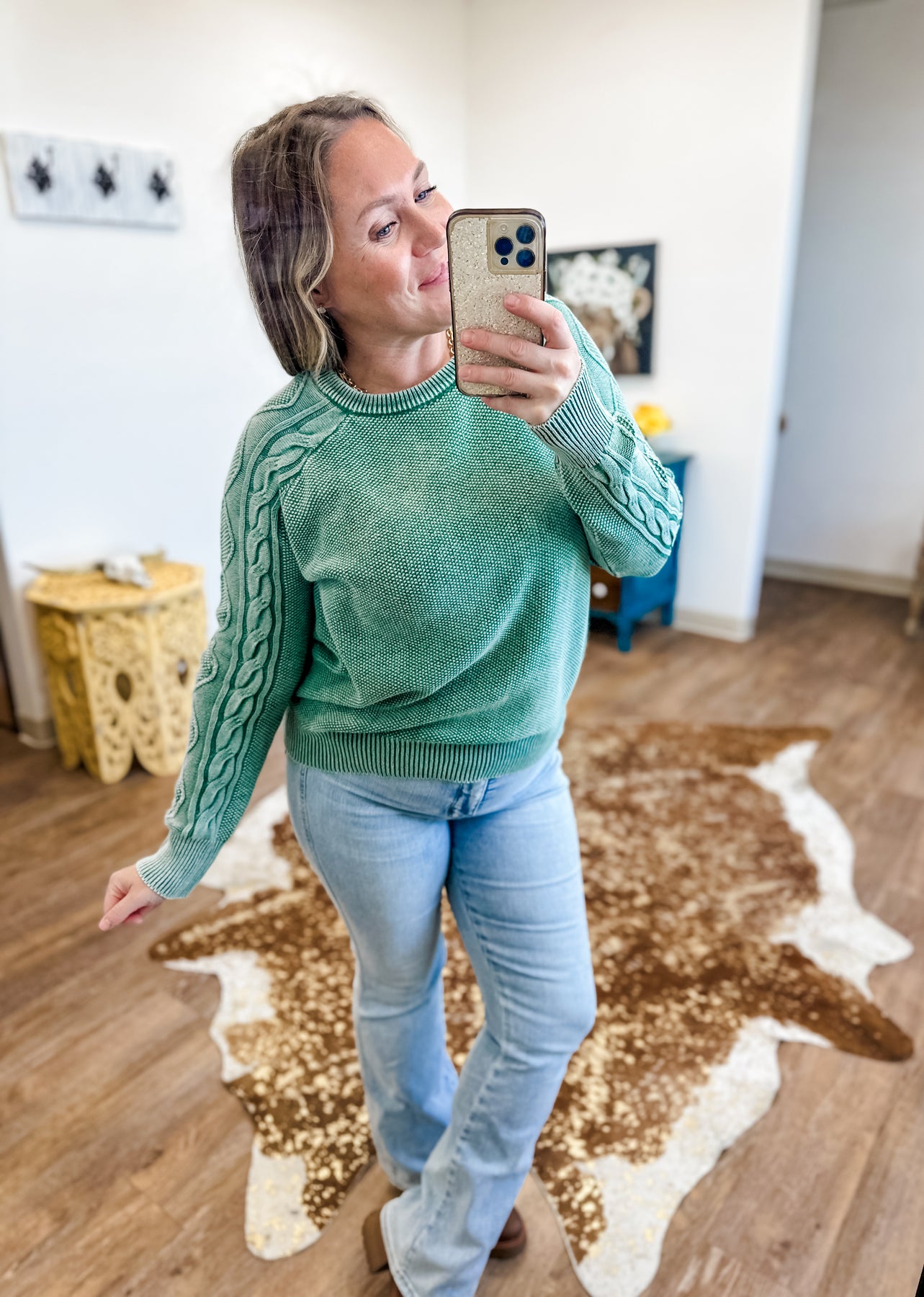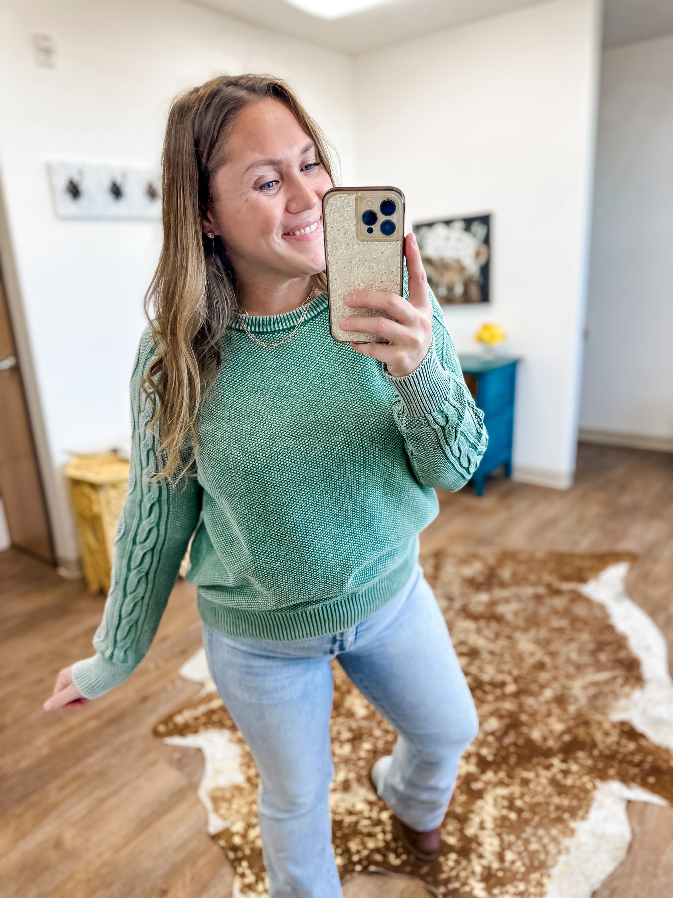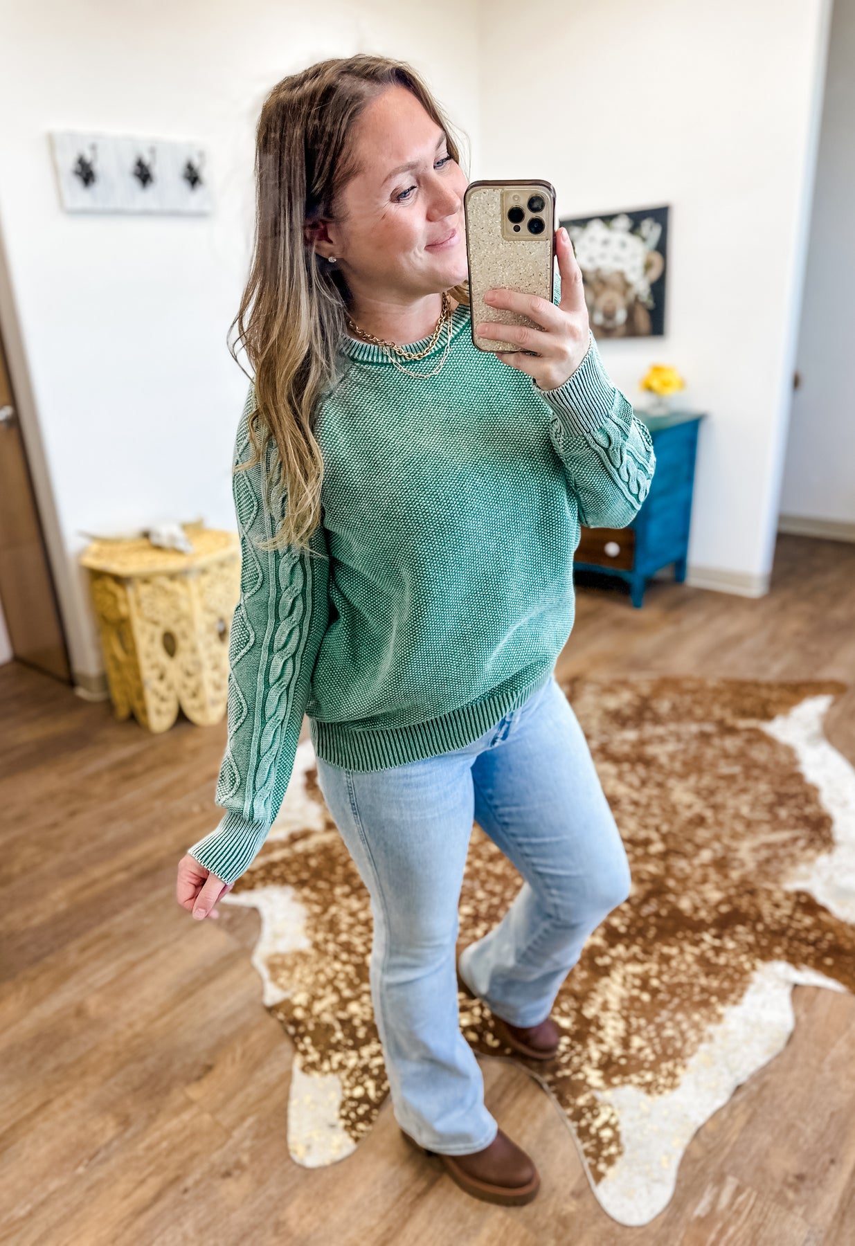 Carter - Forest Green Cotton Stonewashed Cable Knit Sweater