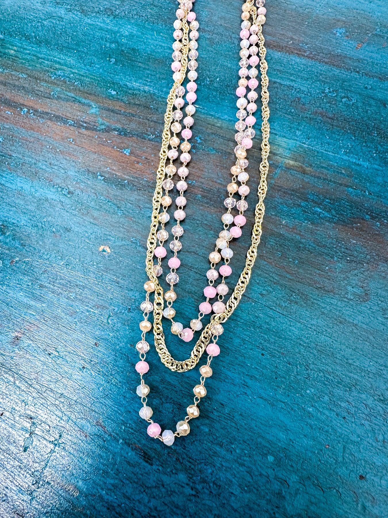 Pink Tides - Pink Dainty Layered Beaded Necklace