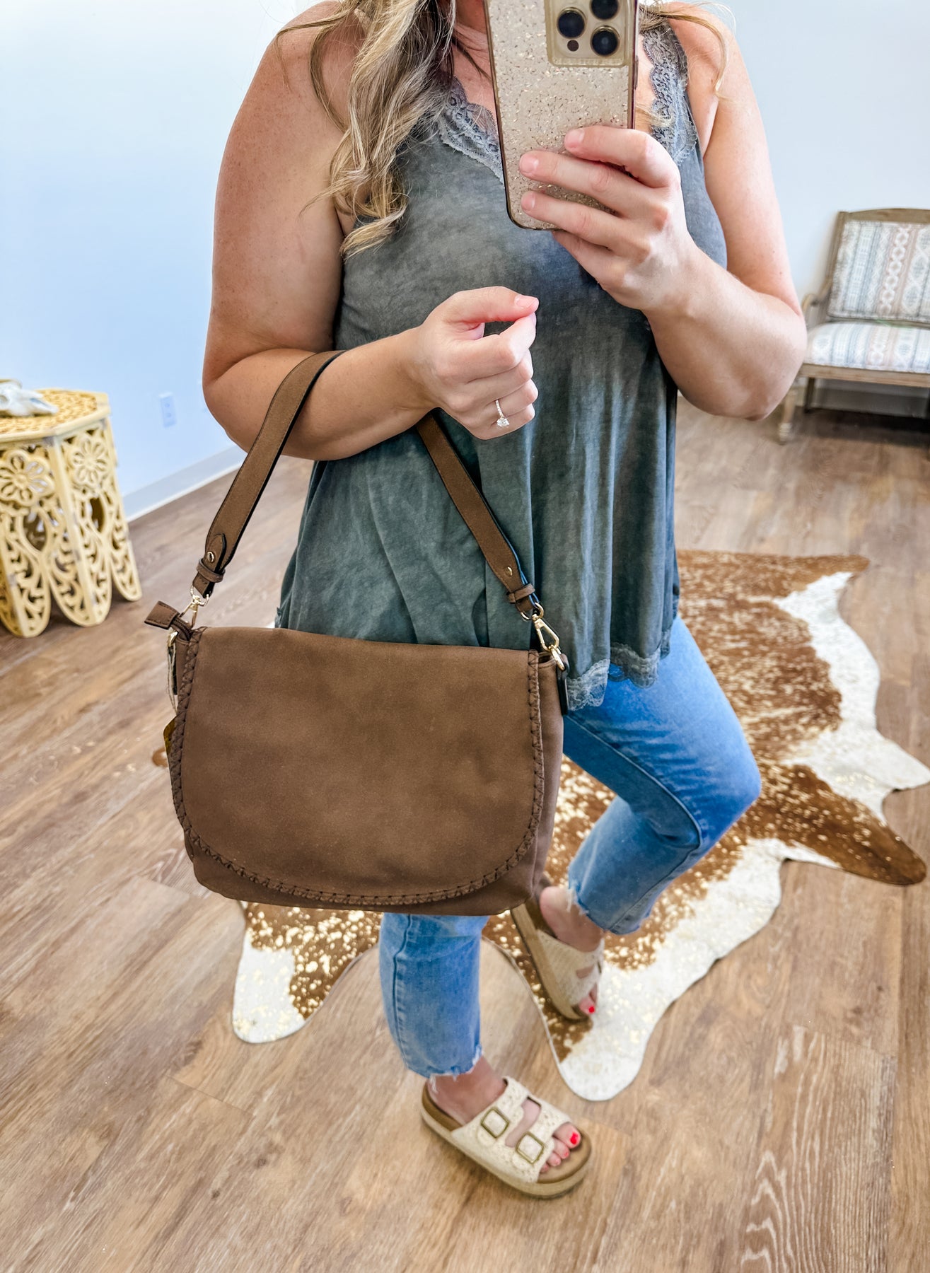 -Functional and Fashionable: Combines practicality with a chic design, making it suitable for various occasions. Shop now and add the Jessie Faux Suede Satchel with Whipstitch Flapover to your collection for a stylish and functional accessory—perfect for enhancing your fall fashion!