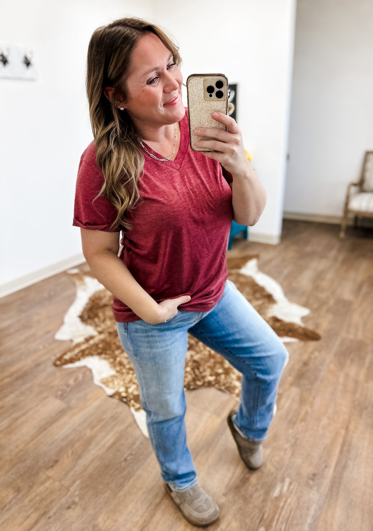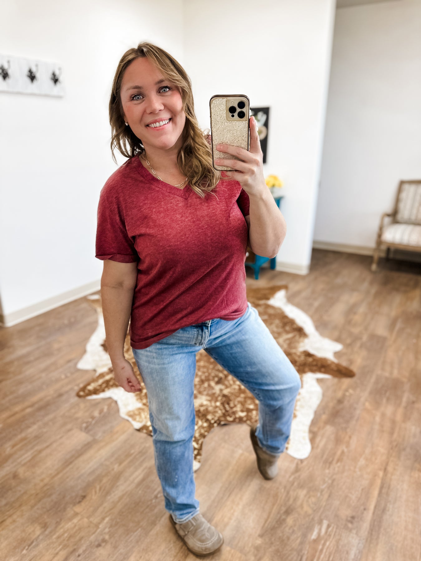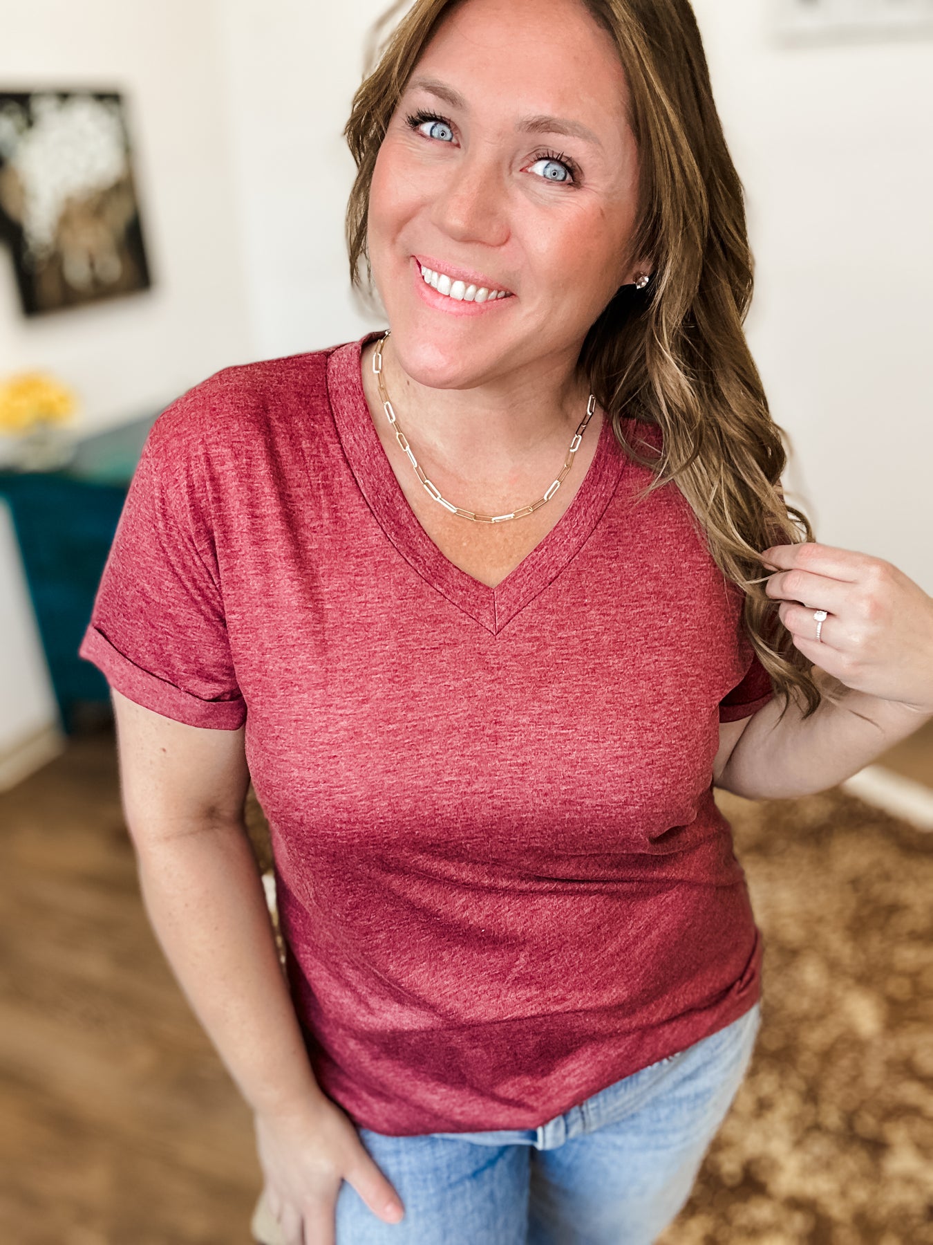 Regular price $28.80Girl… this tee is so good. It’s one of those soft, easy, throw-it-on-and-you’re-done tops that just makes getting dressed feel simple. The heathering gives it that lived-in, effortless vibe, and the little cuffed sleeves? Ugh, they’re adorable. Just enough detail to make it feel elevated without trying.